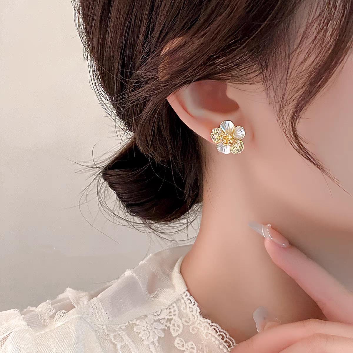 Compra Aretes de Flores Asimétricos de Diseño Único y Elegante de Nicho para Mujer 2025 Nuevos Aretes de Lujo Accesible Elegantes de Alta Gama al por mayor en Joom.pro