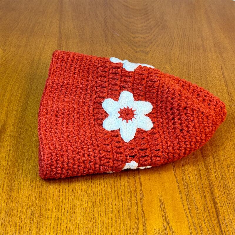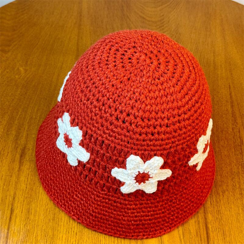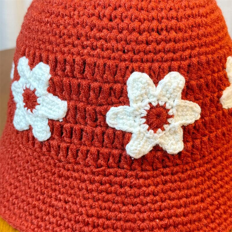 Sombrero de maceta de flores tejido a mano dulce y lindo de estilo japonés para mujer, diseño de nicho versátil, sombrero de pescador pequeño para primavera y verano