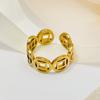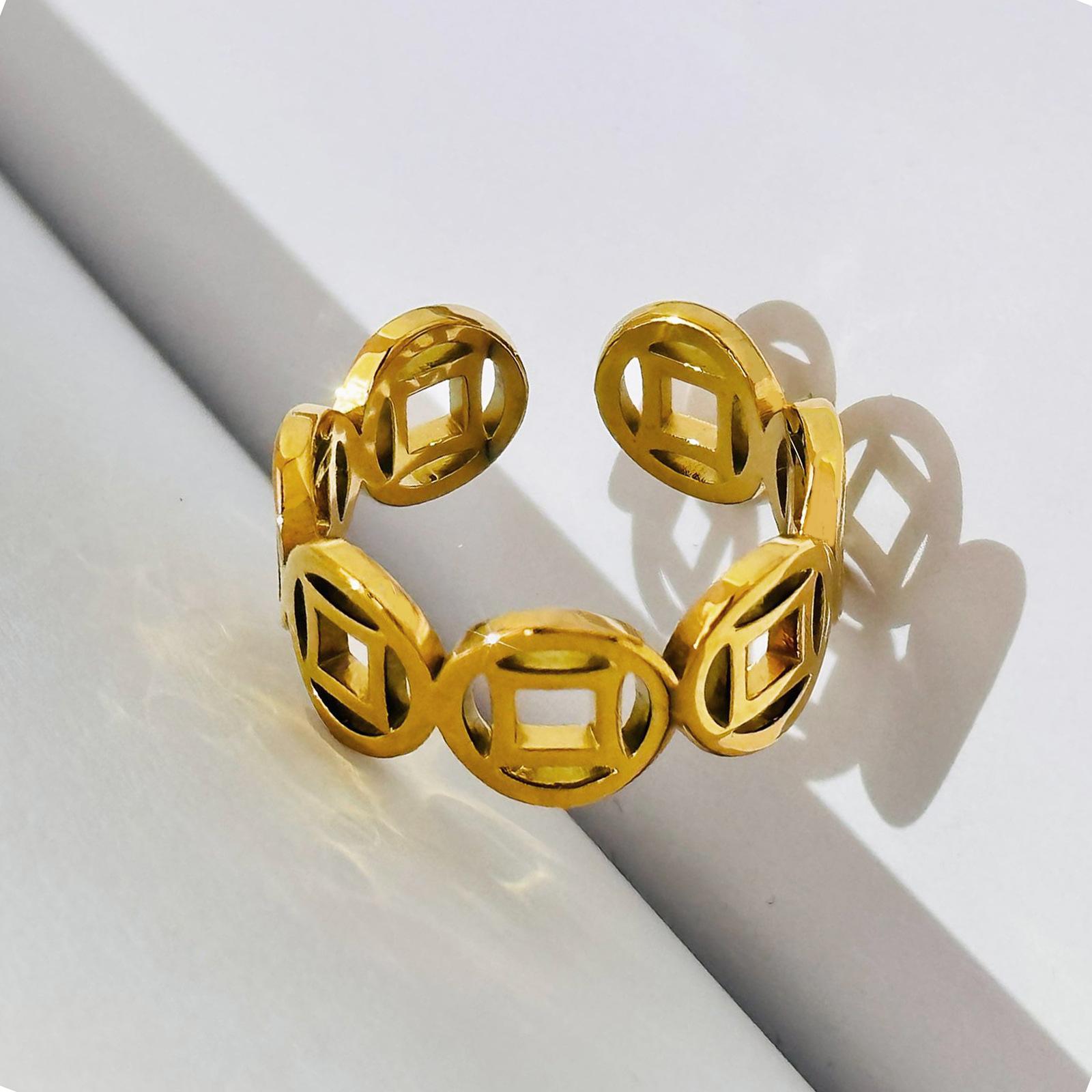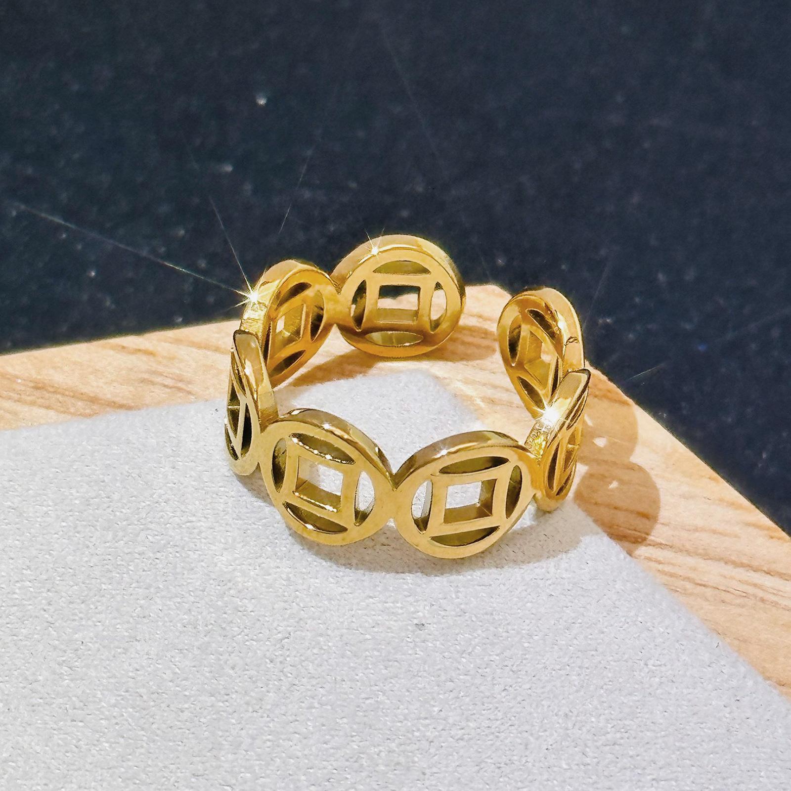 Anillo de cobre ajustable con apertura de acero de titanio, anillo hueco de estilo chino, joyería de lujo ligera y dorada de la fortuna para hombres y mujeres.