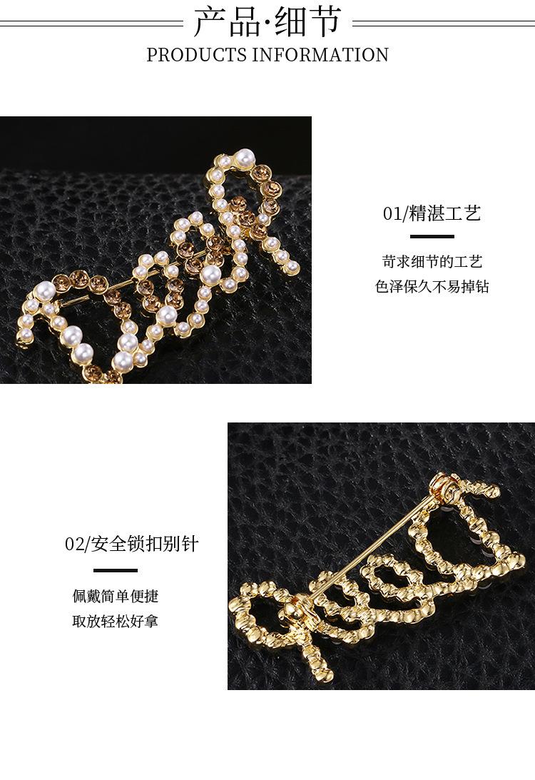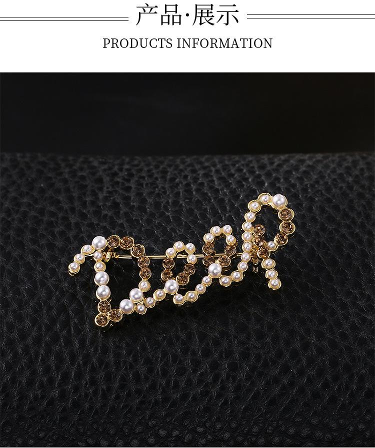 Compra Broche de ramillete de perlas sencillo de nueva moda, alfiler con letras inglesas, accesorios de ropa bonitos y combinables de alta gama, regalos al por mayor en Joom.pro