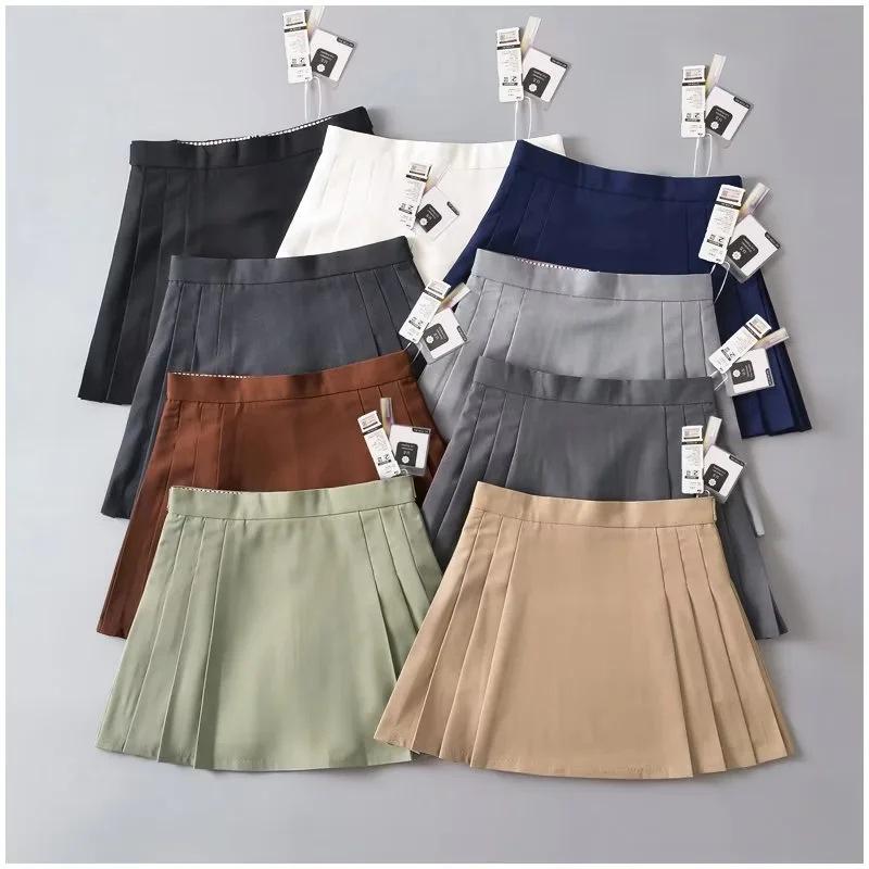 Falda plisada de estilo coreano para mujer, falda acampanada de cintura alta, versátil, de corte A, corta, para verano de 2023