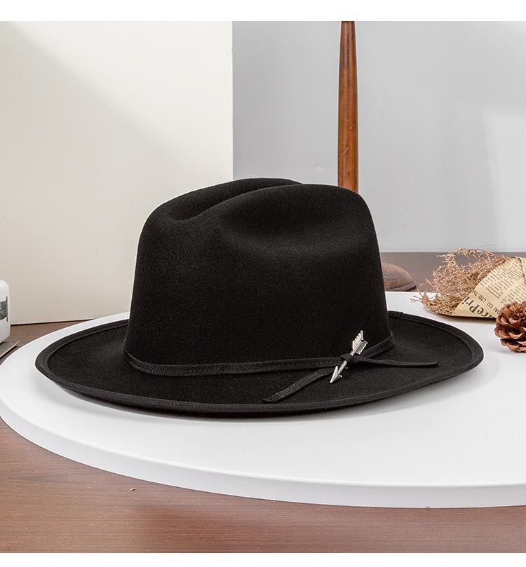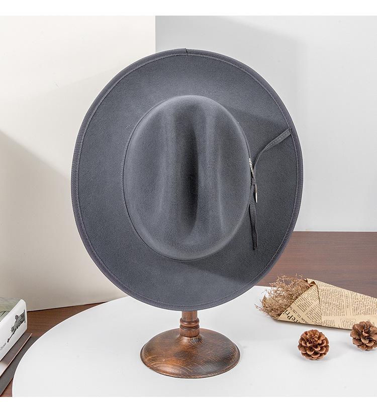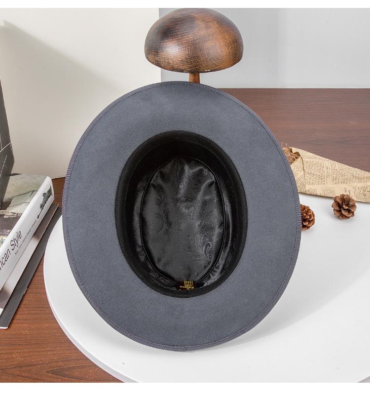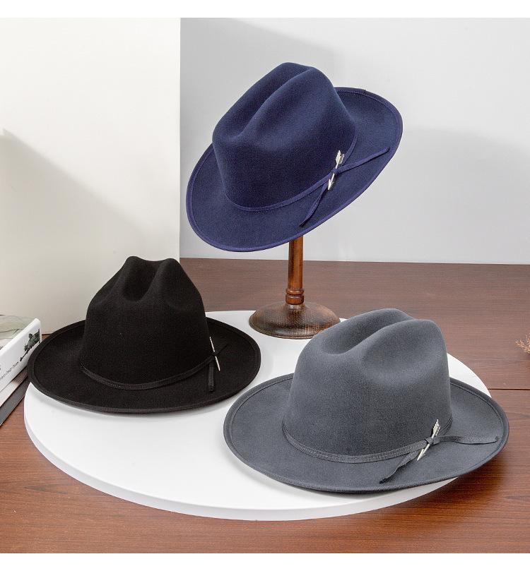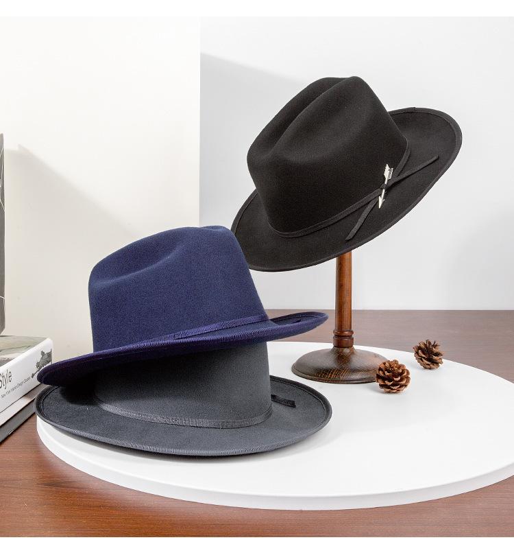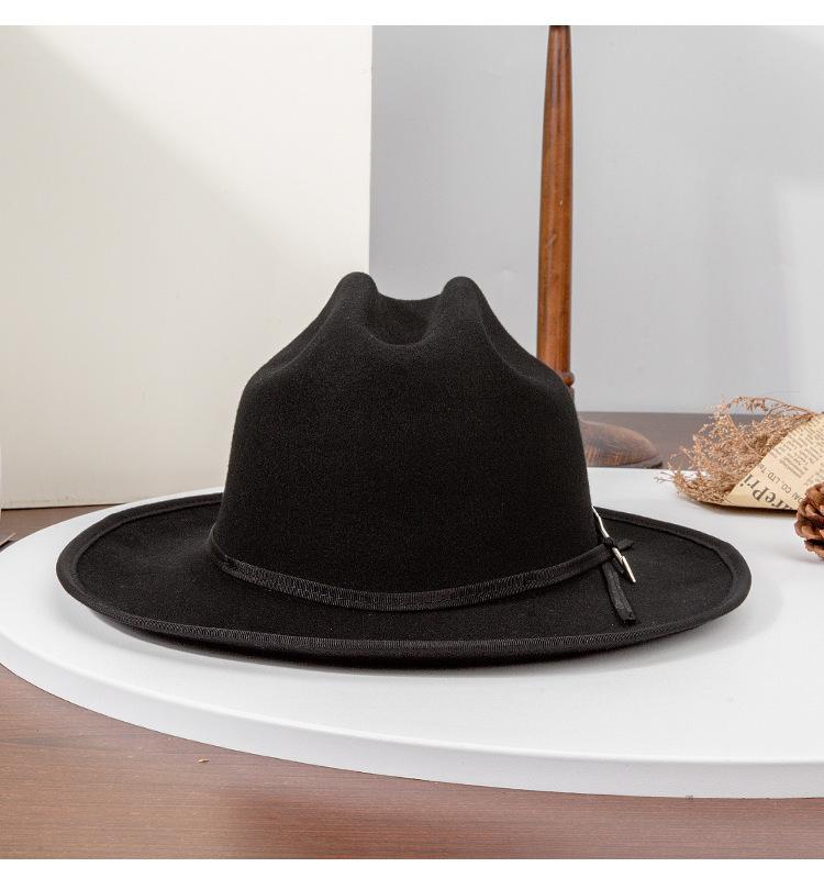 2025 Rongmei Otoño e Invierno Nuevo Sombrero de Fieltro de Lana Vaquero Casual Retro Británico con Cinta para Estilo al Aire Libre