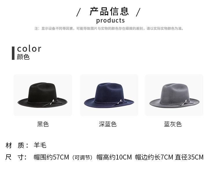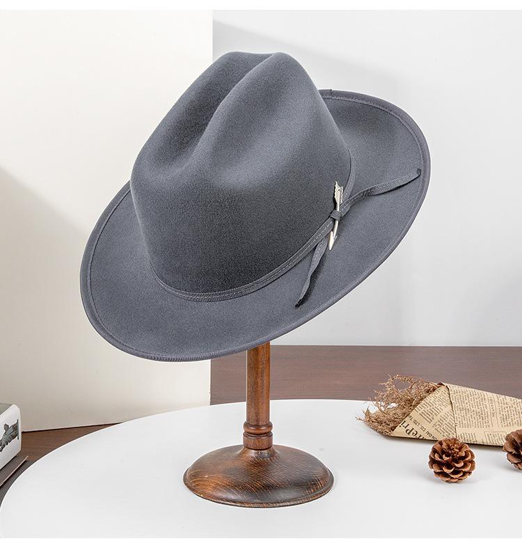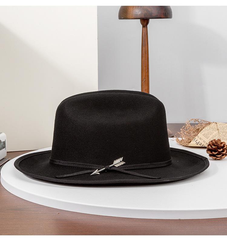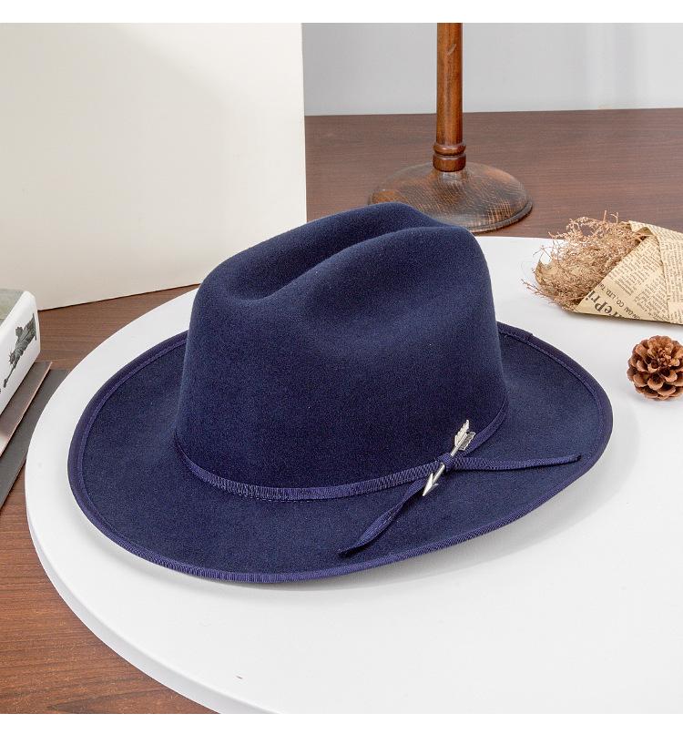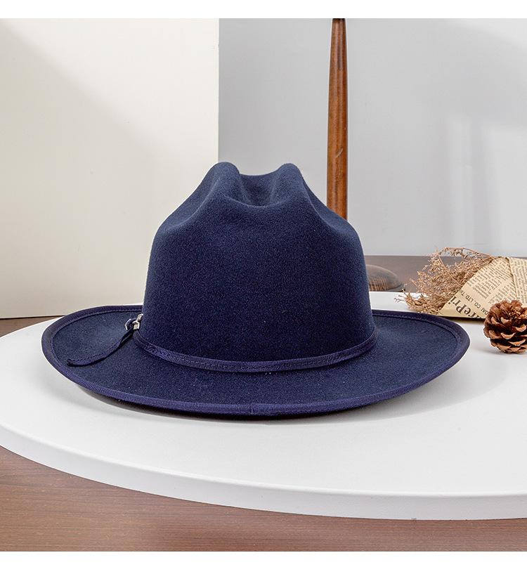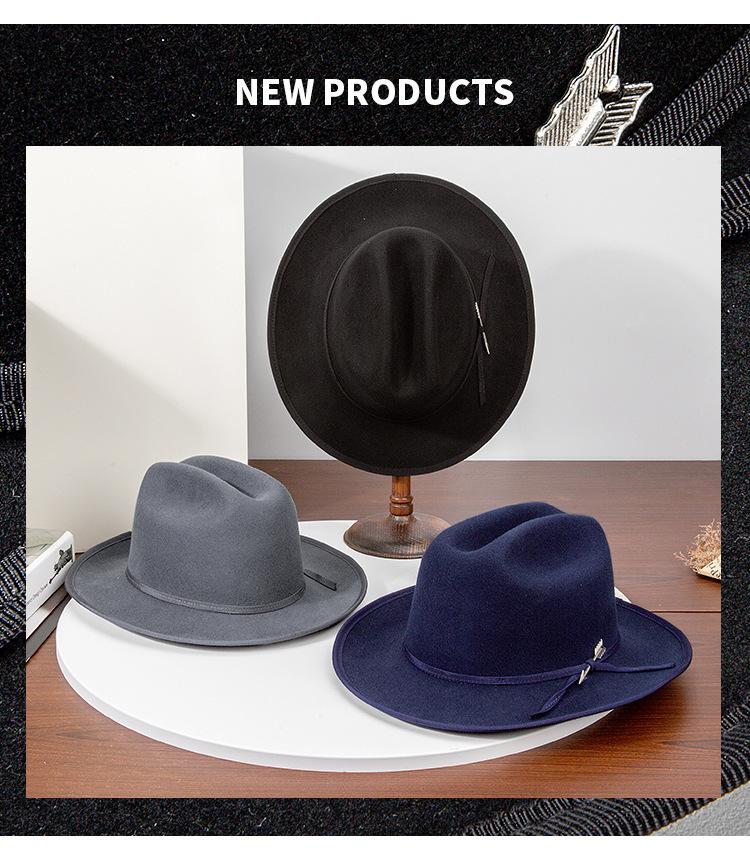 2025 Rongmei Otoño e Invierno Nuevo Sombrero de Fieltro de Lana Vaquero Casual Retro Británico con Cinta para Estilo al Aire Libre