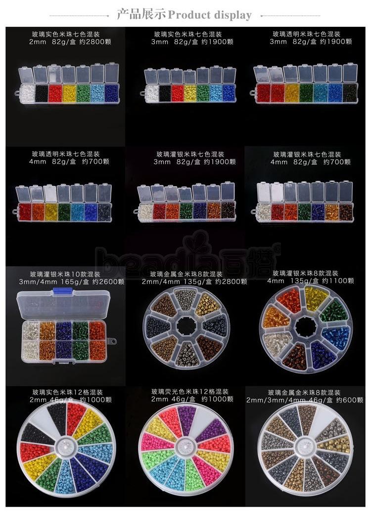 2mm solid beige beads in seven colors, 3mm solid beige seven-color, 3mm transparent beige seven-color, 4mm tra...