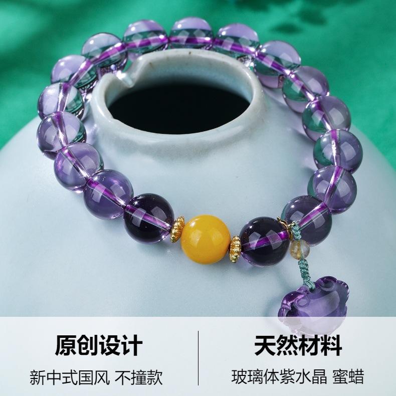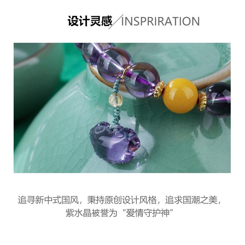 Pulsera de Cristal Natural Pulsera de Amatista 2024 Nuevo Diseño Original Colgante Candado Ruyi Pulsera Candado Longevidad