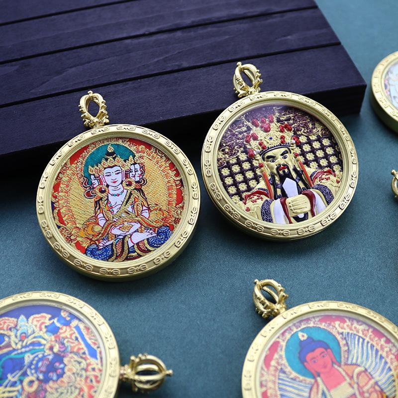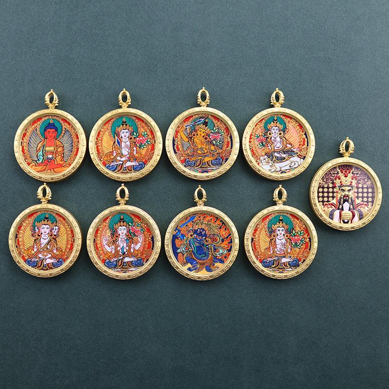 Nombre del producto: Colgante Wuye thangka tridimensional redondo pintado a mano en oro