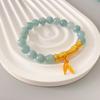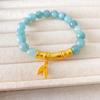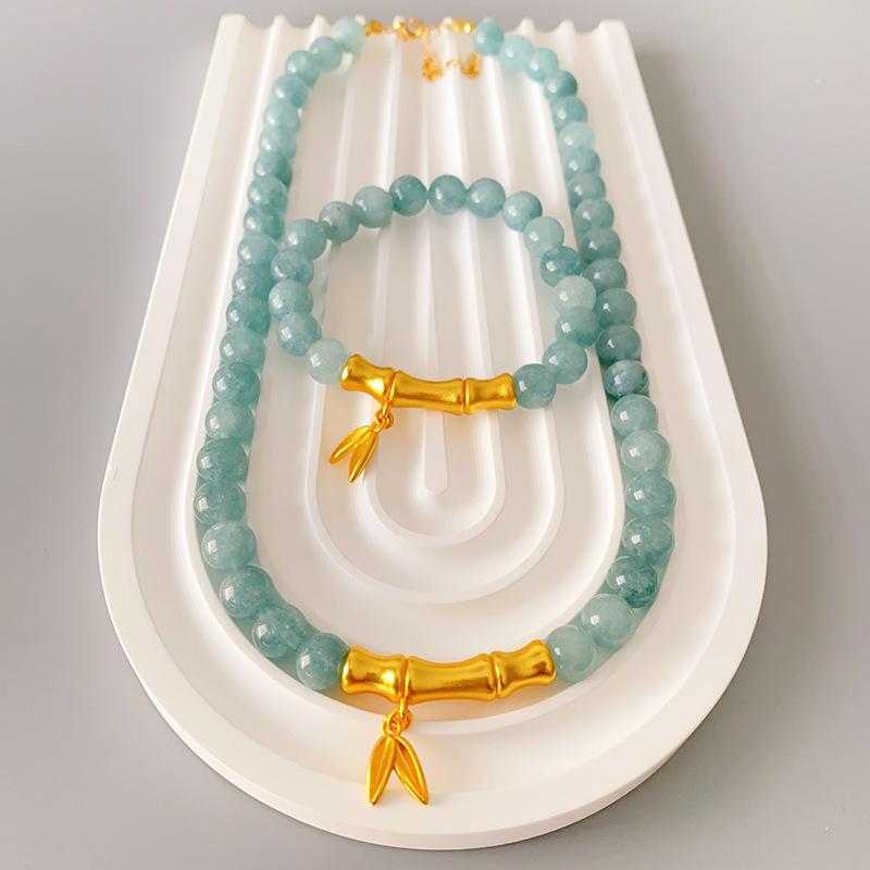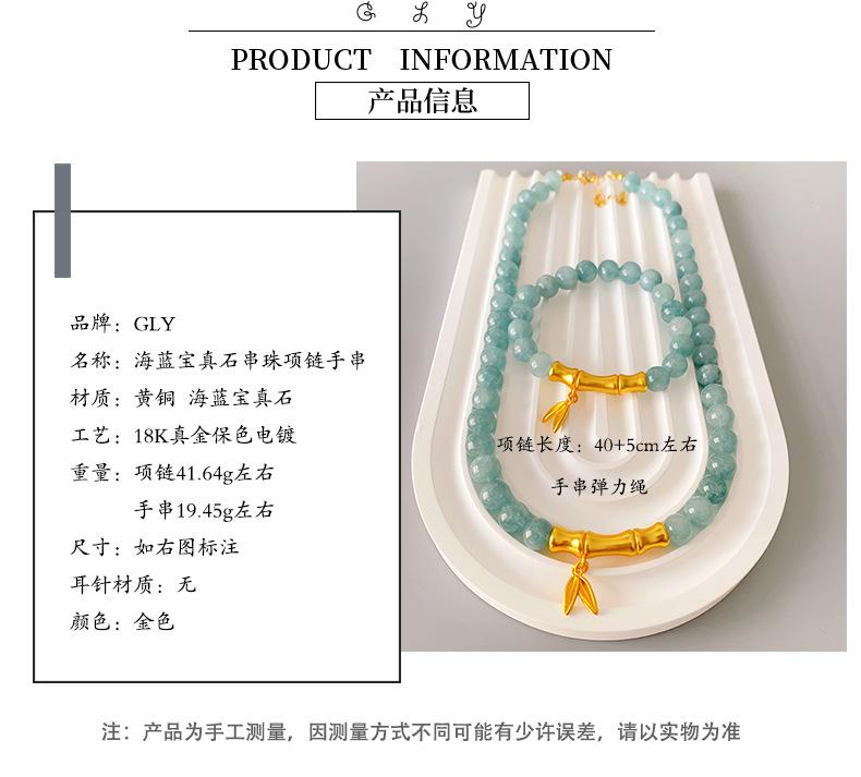 Collar de cuentas de aguamarina con piedra auténtica, estilo nacional, chapado en latón francés antiguo, dorado, bambú y estampado, pulsera de cuerda para mujer.
