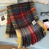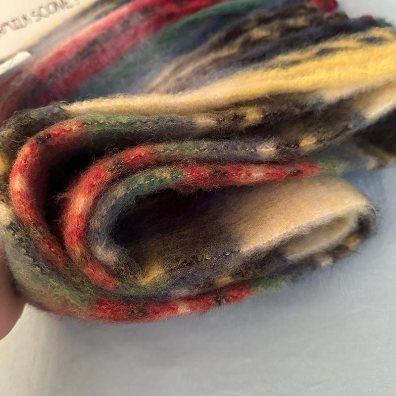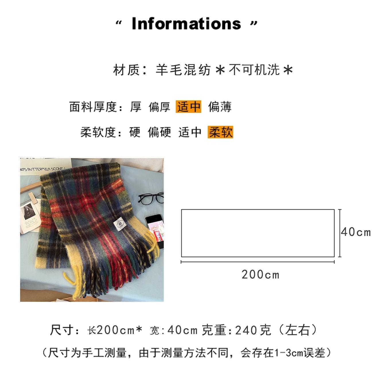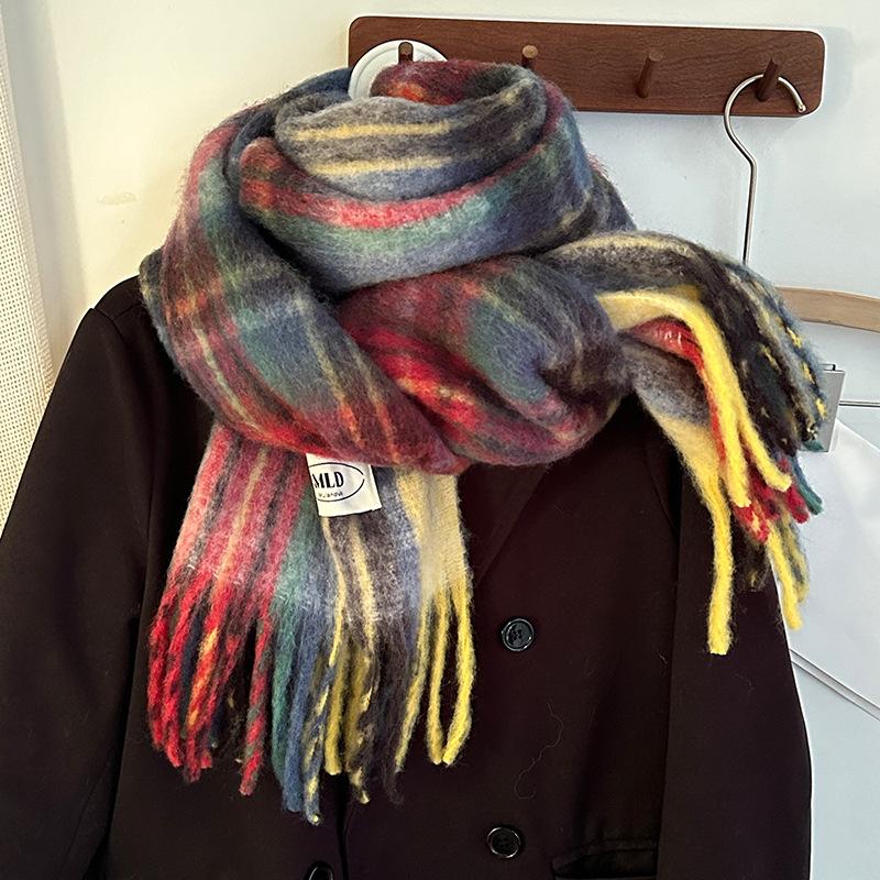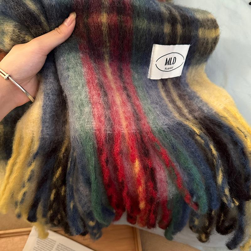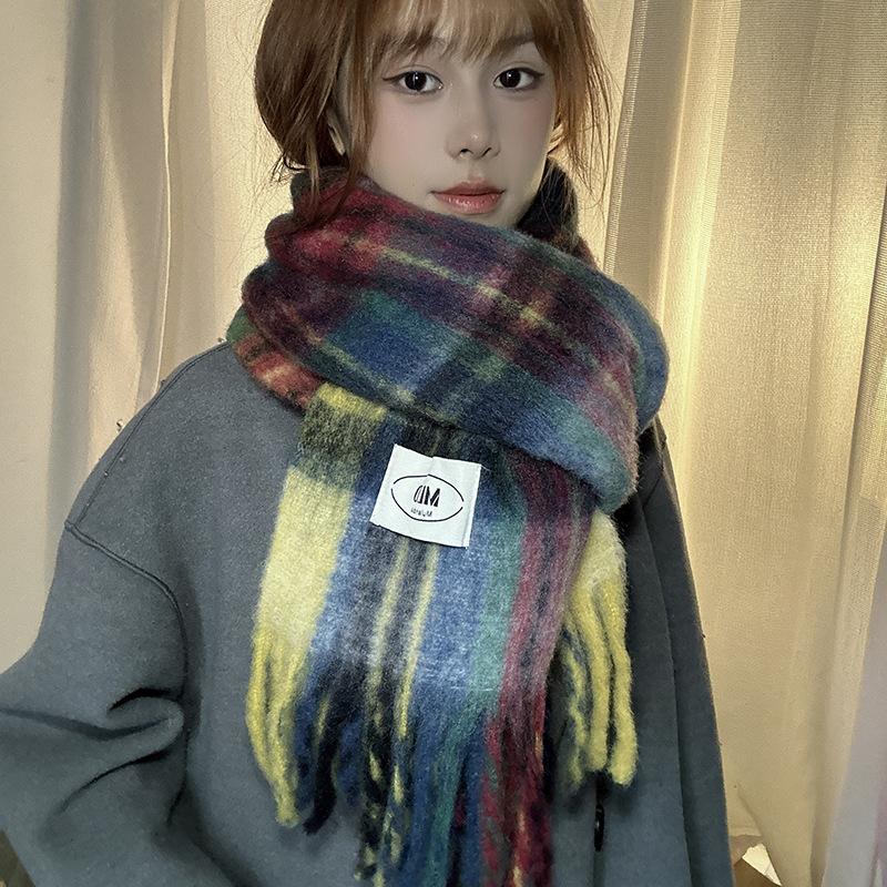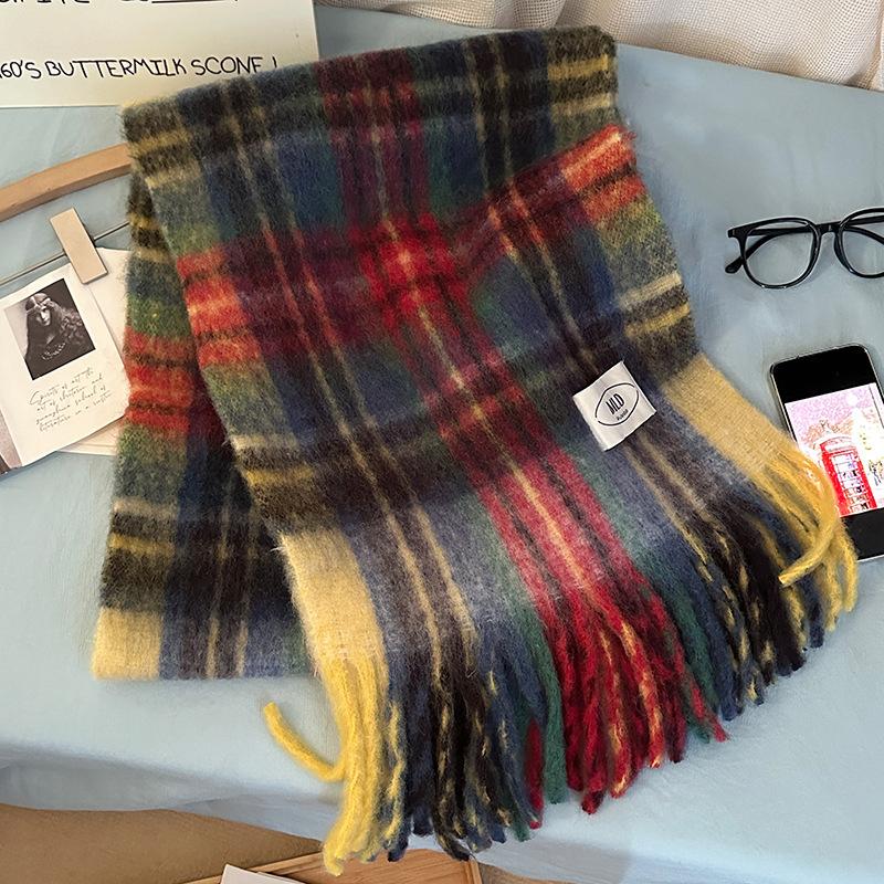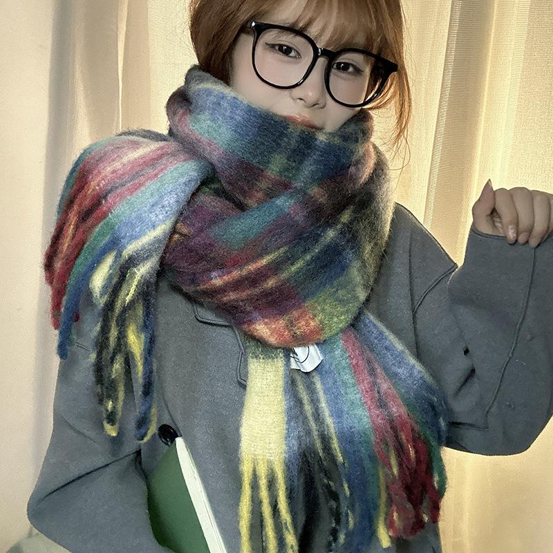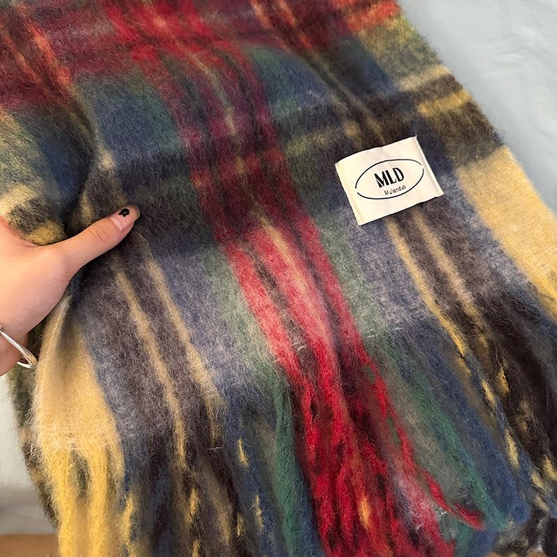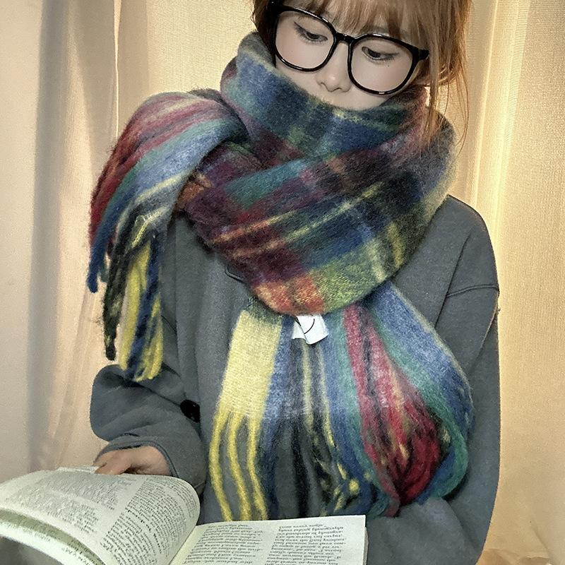 Compra Bufanda a cuadros de color contrastante Bufanda de mohair con borlas de color Ins Otoño e Invierno Cálida Gruesa Atmósfera Estudiante Combinación con todo al por mayor en Joom.pro
