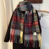 Bufanda a cuadros de color contrastante Bufanda de mohair con borlas de color Ins Otoño e Invierno Cálida Gruesa Atmósfera Estudiante Combinación con todo