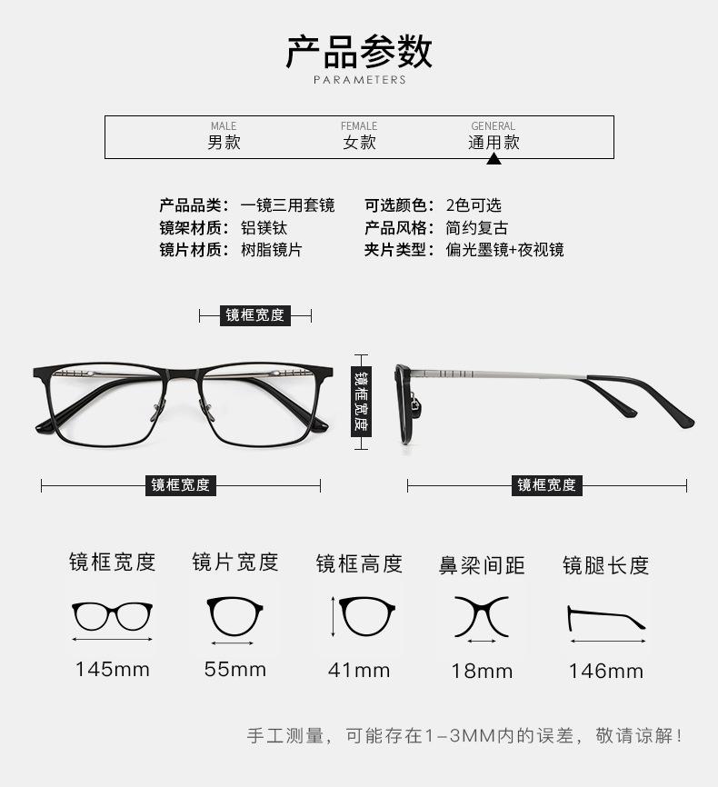 Gafas de sol ultraligeras para miopía, de aluminio, magnesio y titanio puro, con montura grande, con clip especial para lentes polarizadas para conducir, para hombres, que se pueden equipar con lentes de contacto.