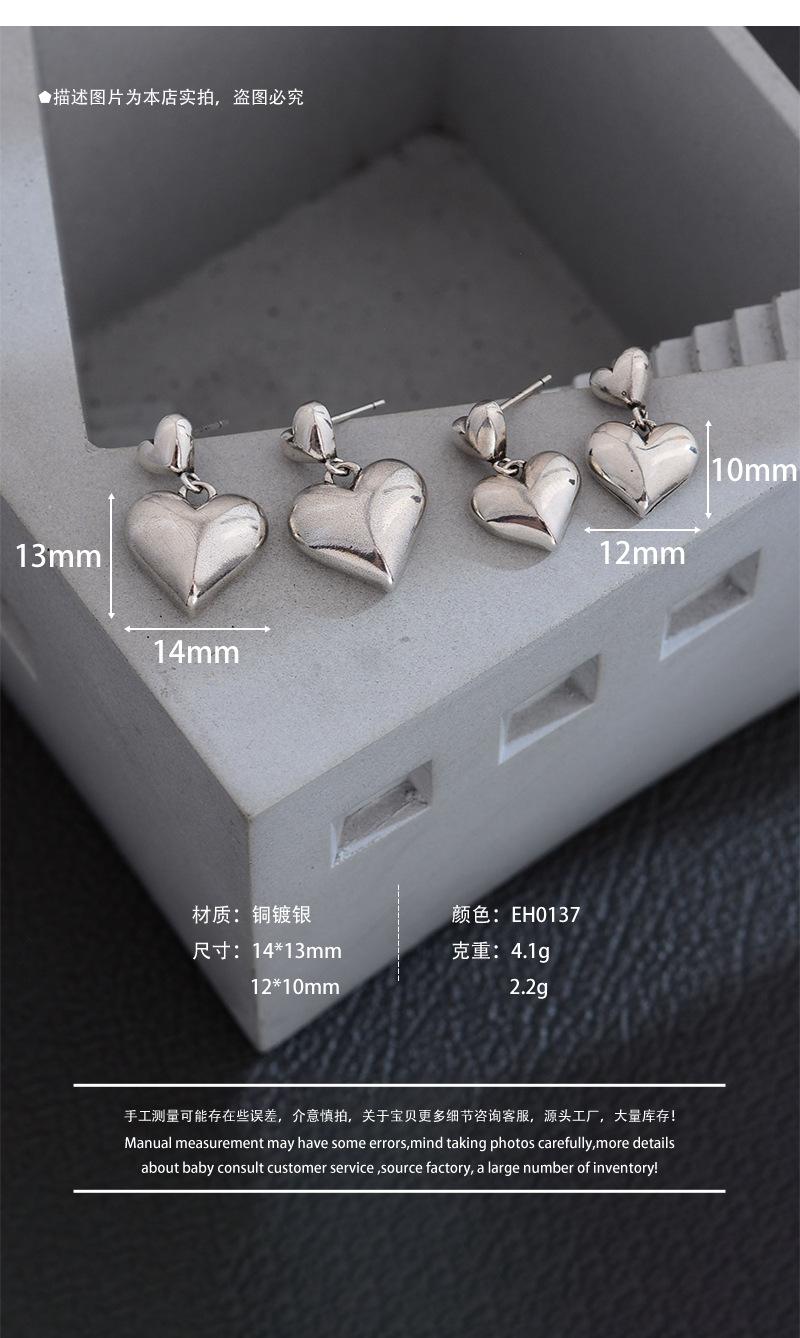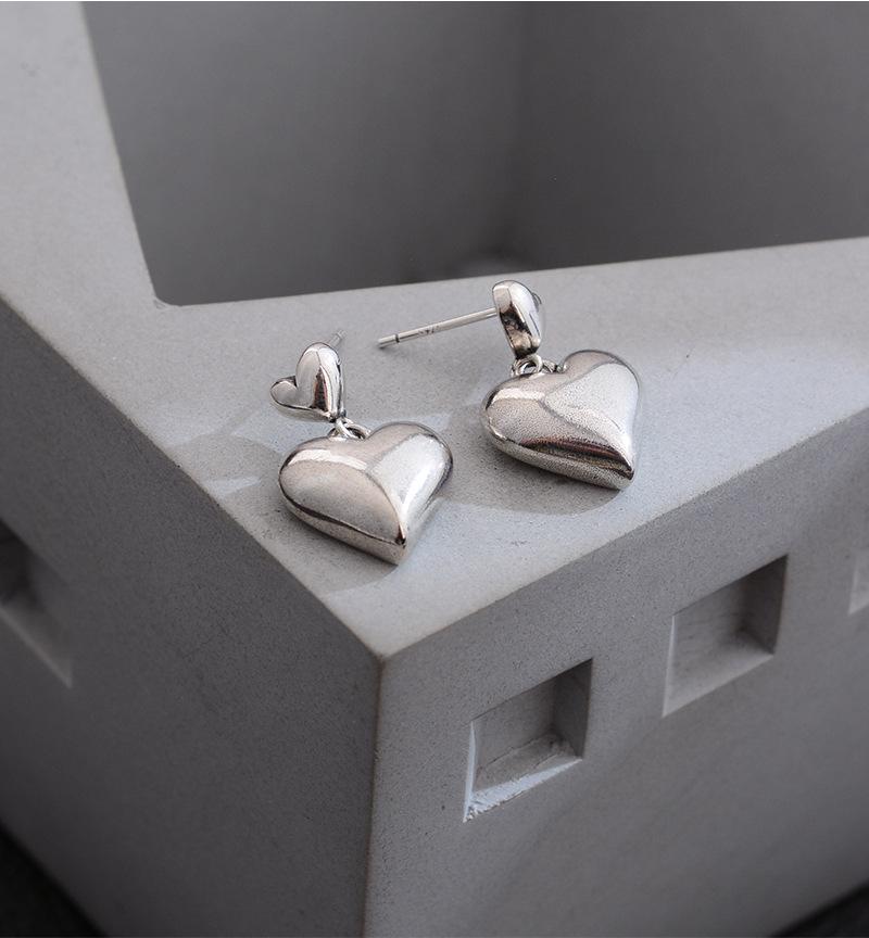 Pendientes sencillos, ligeros, de lujo y de alta gama, de estilo elegante y frío para mujer, con forma de corazón distintivo de celebridades de Internet retro.