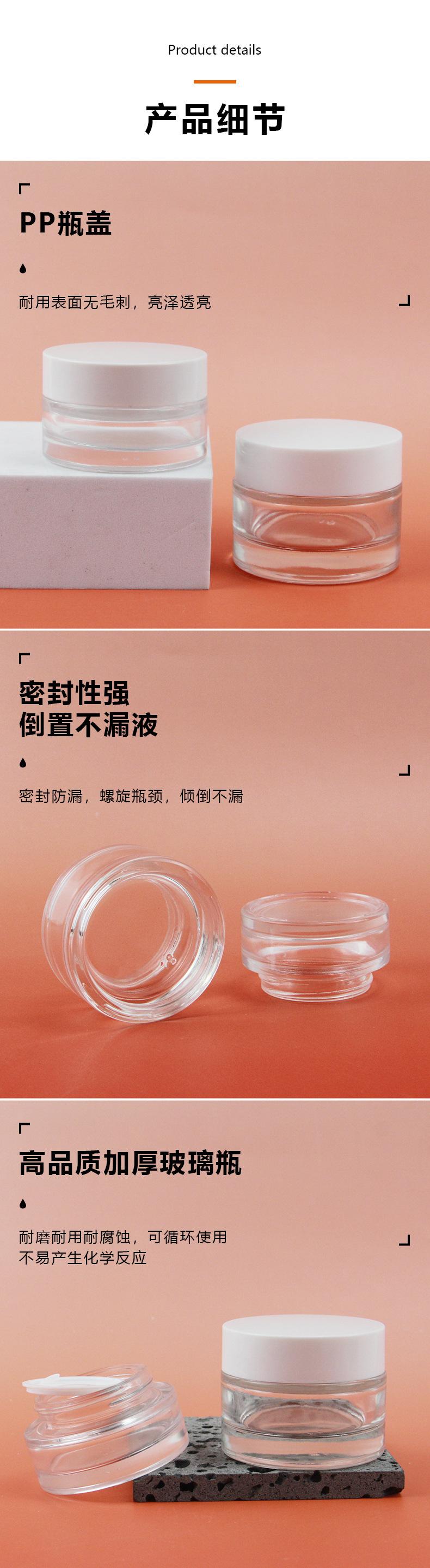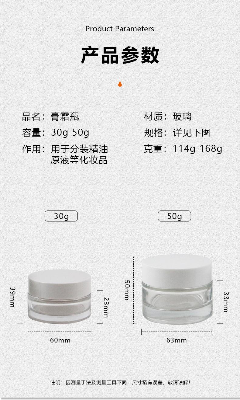 Frasco de Crema de Vidrio Transparente Adecuado de 30 g de Guangzhou Botella Dispensadora de Crema y Mascarilla de Pared Gruesa Esmerilada de Alta Transparencia de 50 g