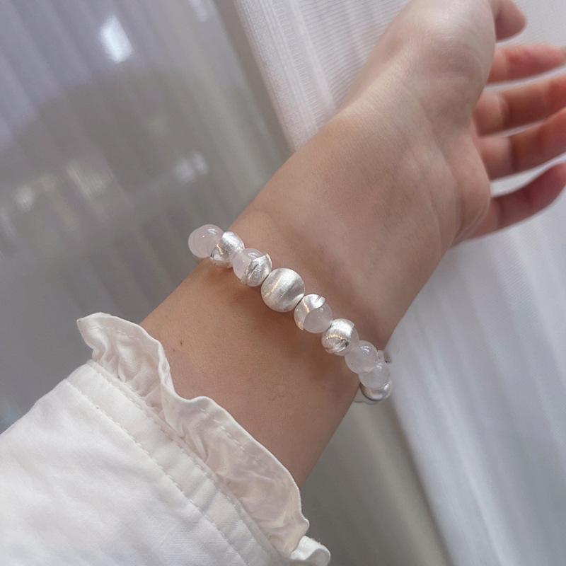 Pulsera de plata de ley S925 con ágata y calcedonia para mujer, estilo nacional chino, exquisita y combinable, de alta gama.