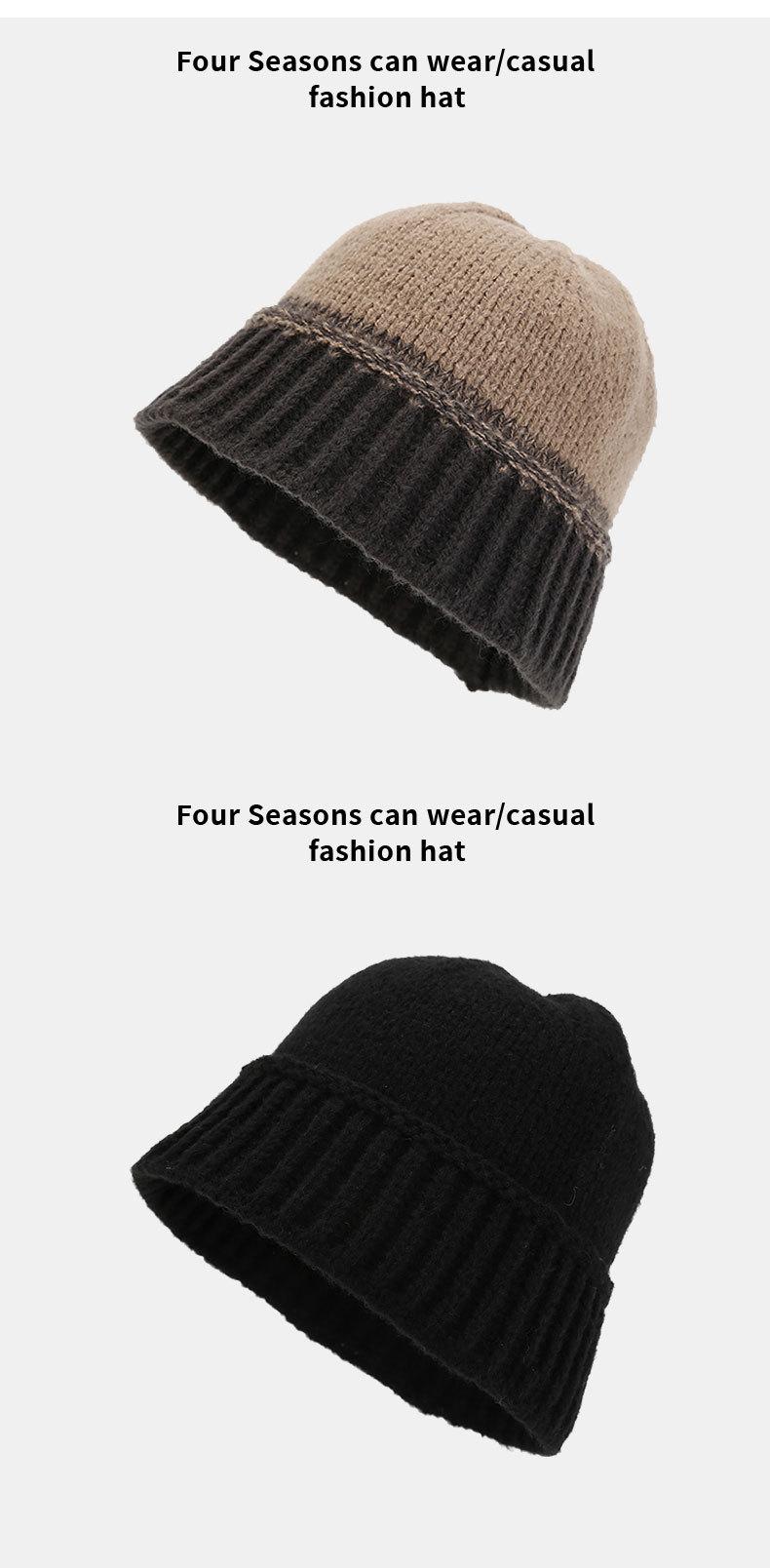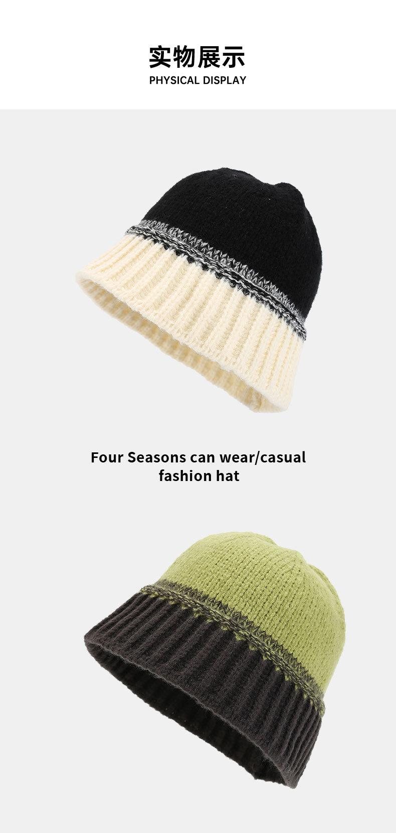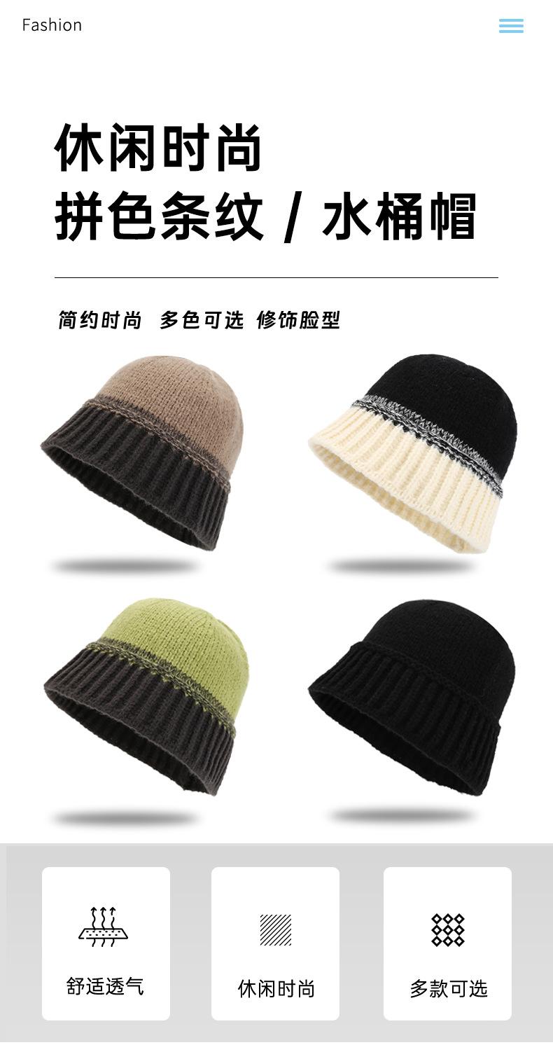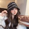2024 nuevo otoño e invierno ins rayas todo-fósforo sombrero de pescador coreano combinación de colores moda cálido sombrero de cubo de punto