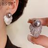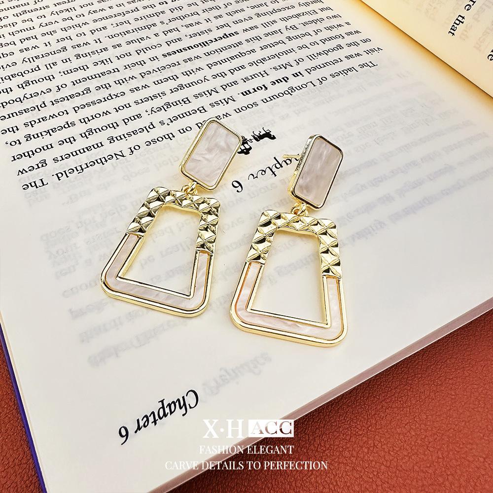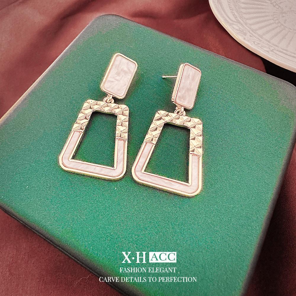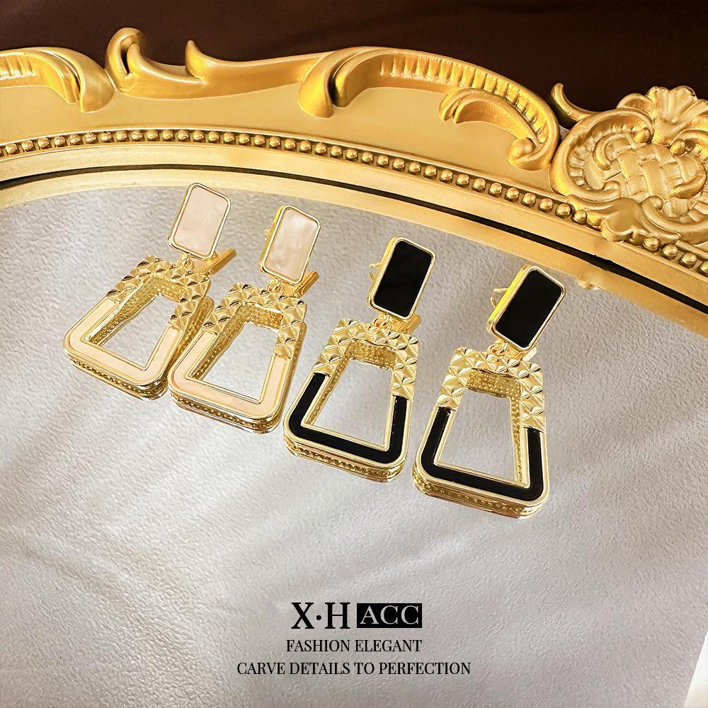Pendientes de gota de aceite huecos geométricos exagerados europeos y americanos con aguja de plata, elegantes pendientes largos de nicho, ligeros y lujosos, de alta gama para mujer.