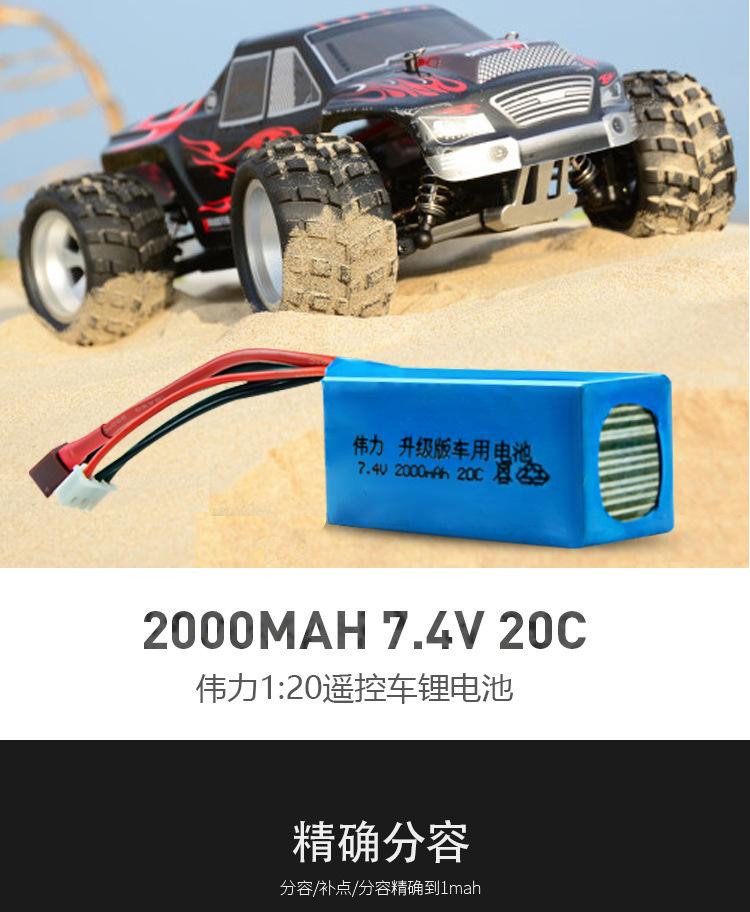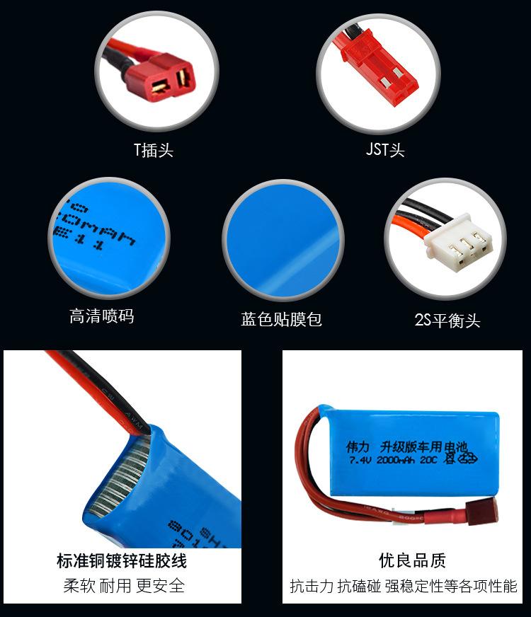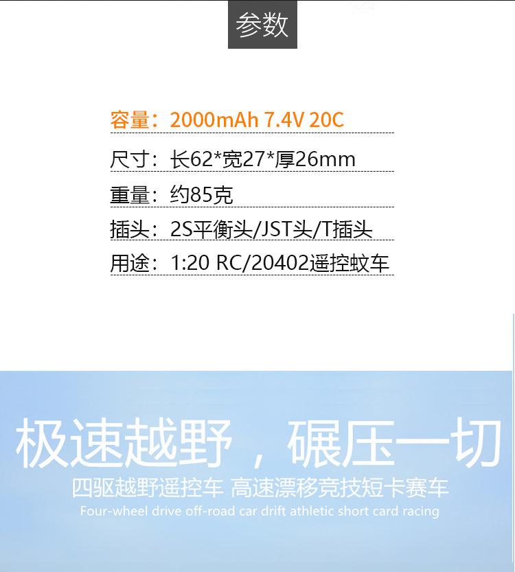 Parámetros de la batería: 2S-7.4V 2000mAh 20C