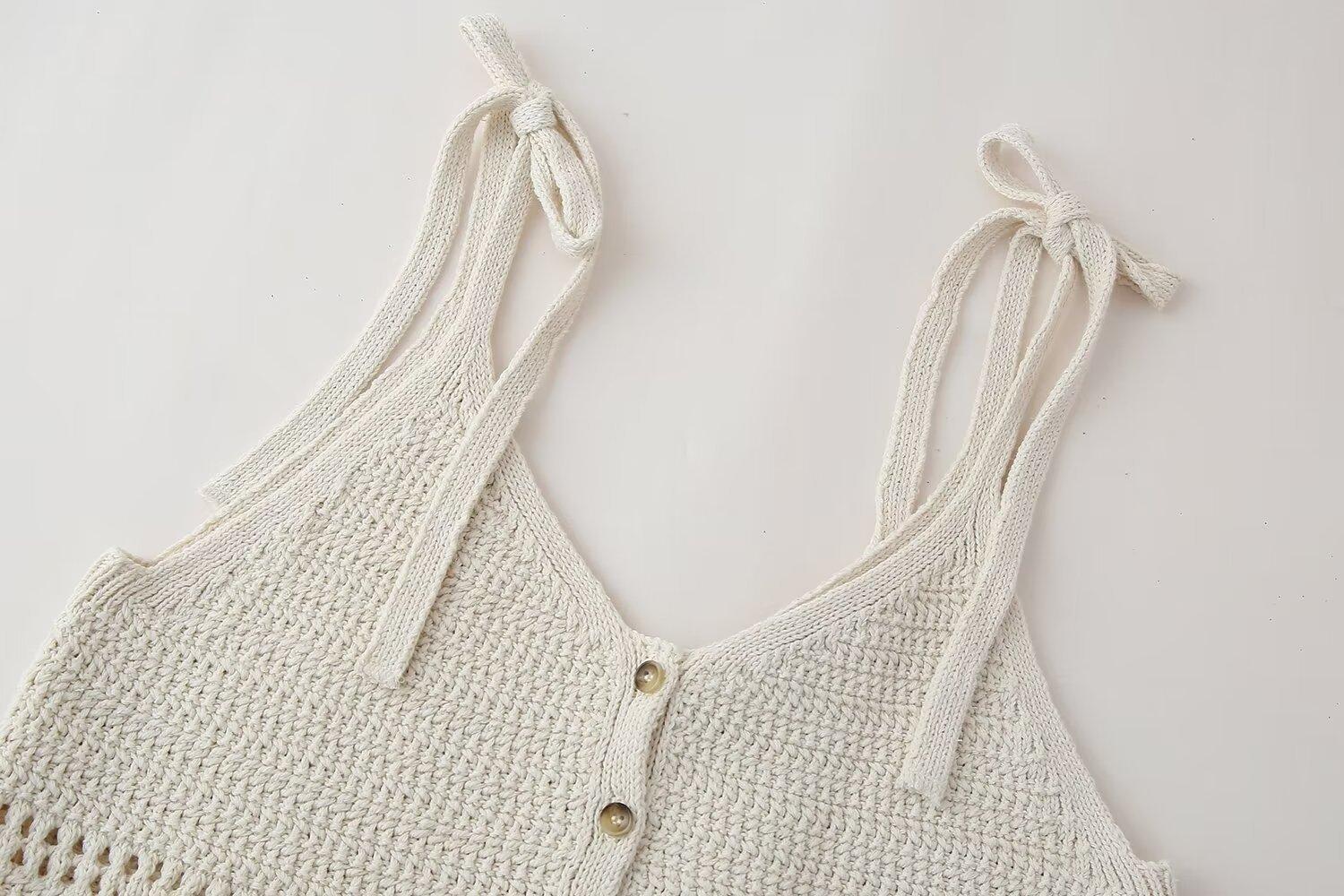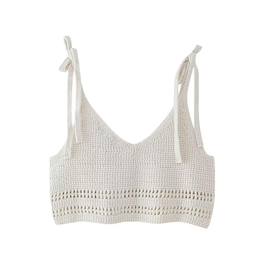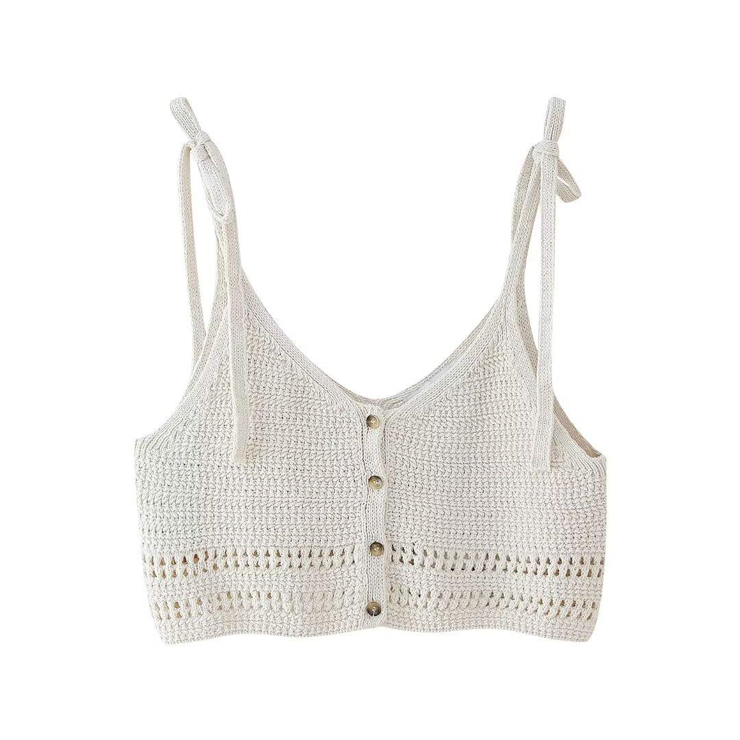 Chaleco de verano 2024 para mujer, estilo europeo y americano, informal, de encaje, corto, con tirantes cruzados en el pecho