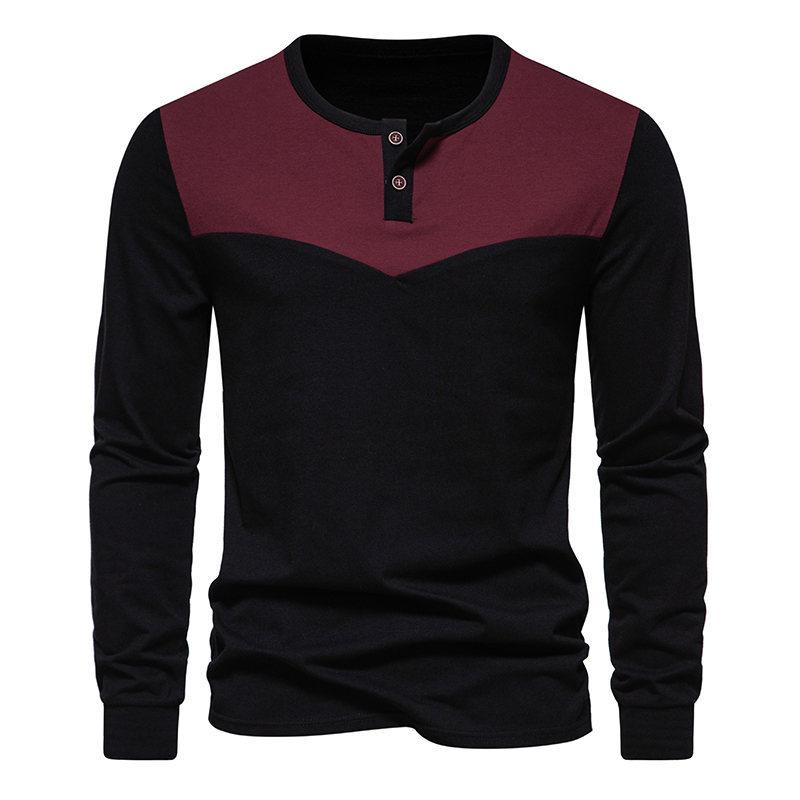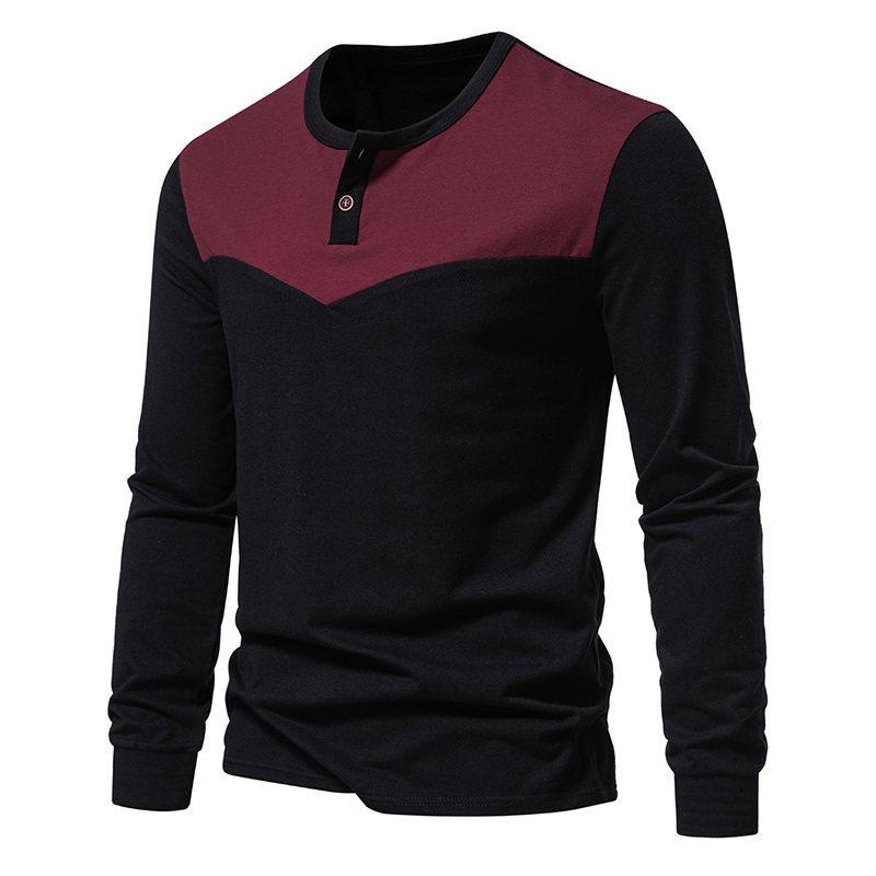 Camiseta de manga larga de 2 botones a juego para hombre, nueva camiseta de otoño e invierno de comercio exterior de 2023, camiseta informal con costuras de talla europea, base de talla grande
