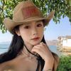 Sombrero de paja de verano ala grande sombrero de vaquero occidental para hombre transpirable sombrero para el sol protección solar sombrero para el sol sombrero de playa transfronterizo