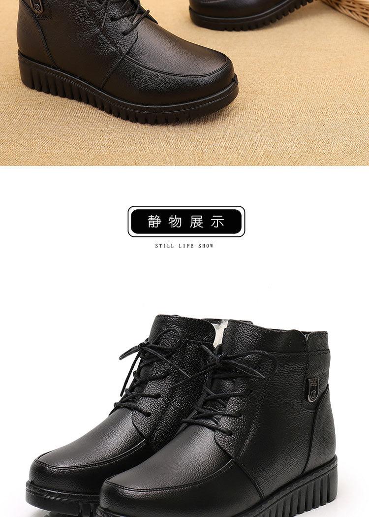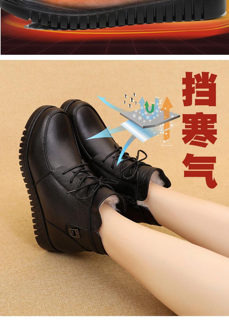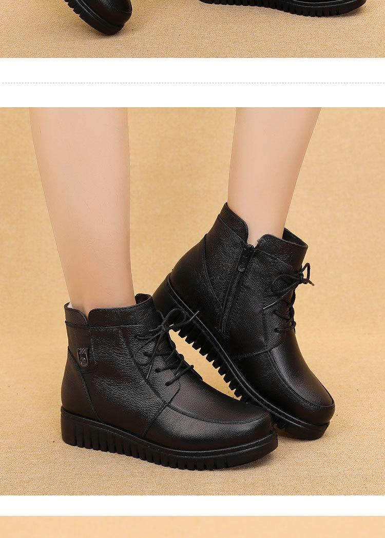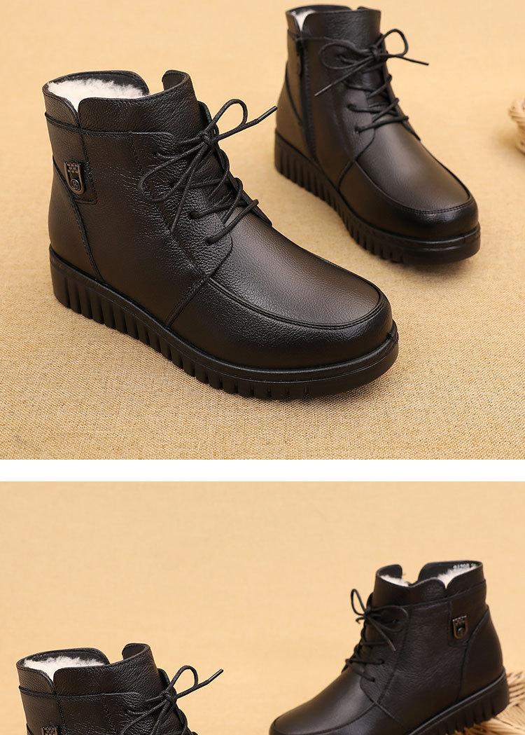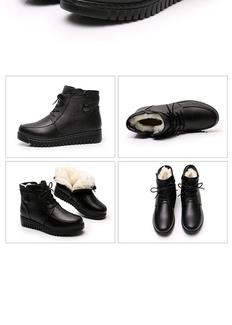 Zapatos de Algodón de Cuero Suave de Invierno Zapatos de Madre Suela Blanda para Mujer Cómodos Forrados de Lana Cálidos Antideslizantes Botines al Tobillo Zapatos de Cuero para Mediana Edad Planos Talla Grande