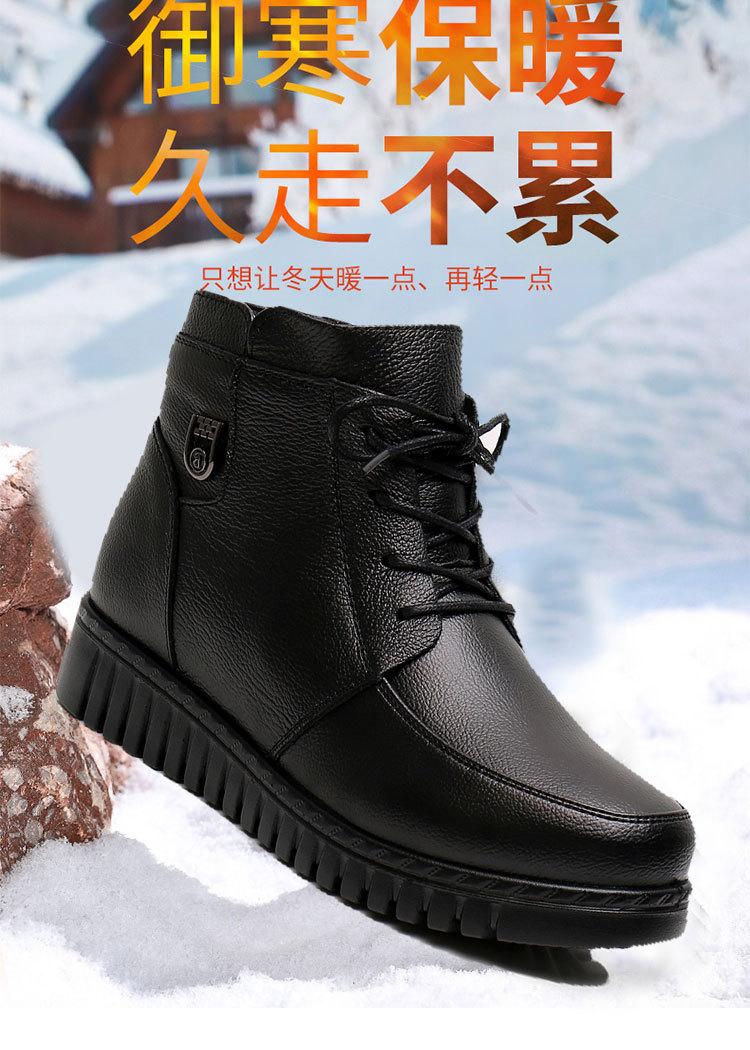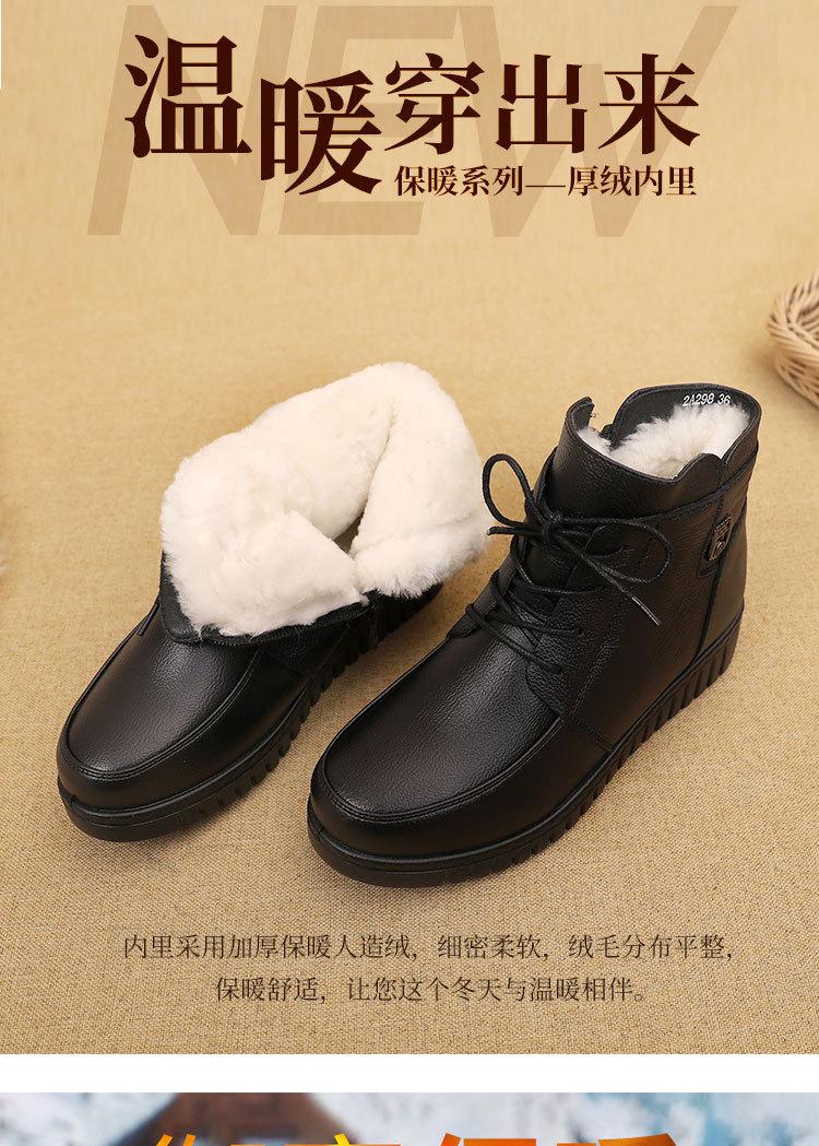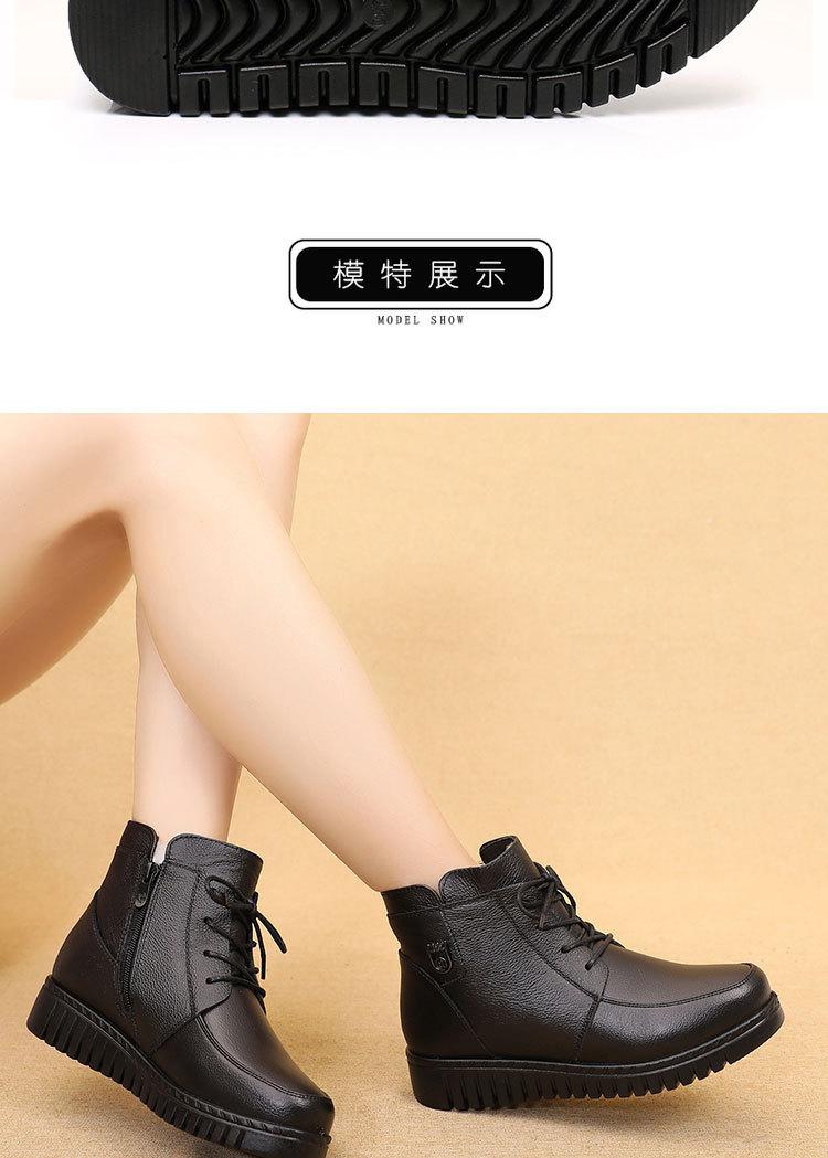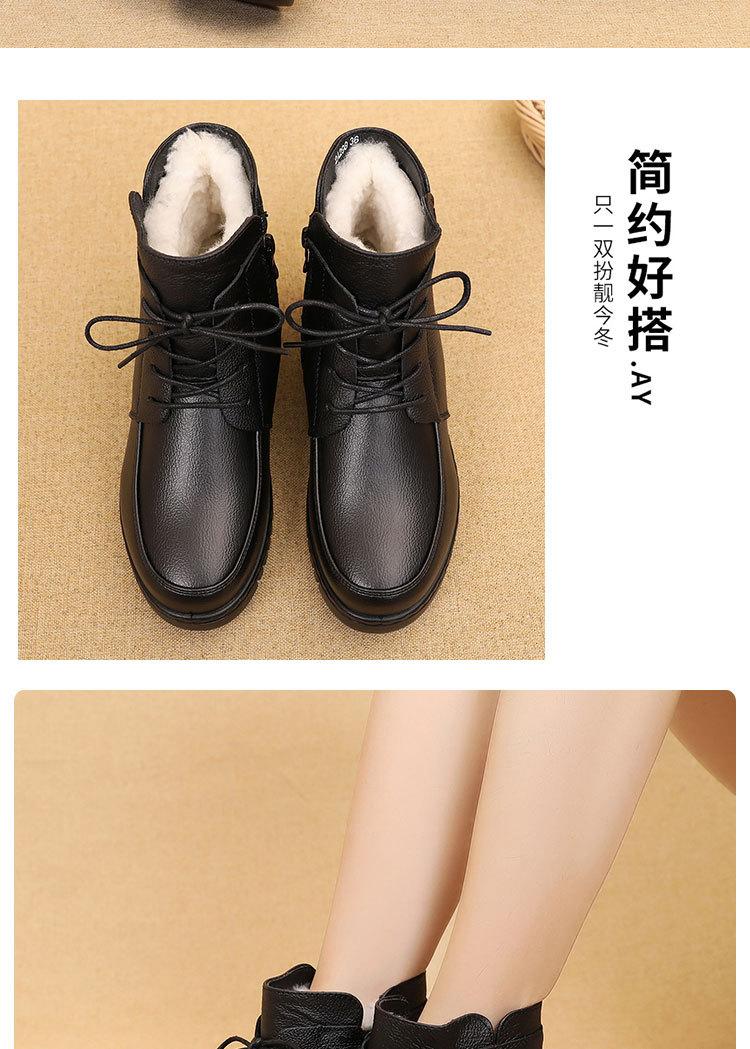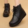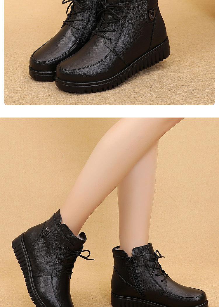 Zapatos de Algodón de Cuero Suave de Invierno Zapatos de Madre Suela Blanda para Mujer Cómodos Forrados de Lana Cálidos Antideslizantes Botines al Tobillo Zapatos de Cuero para Mediana Edad Planos Talla Grande