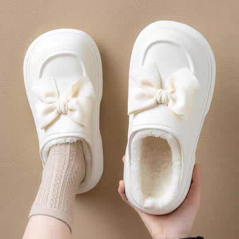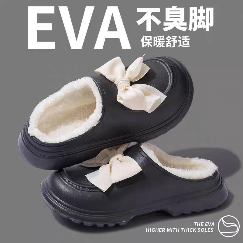 Zapatos de algodón con lazo de invierno nuevos zapatos de mujer de material EVA zapatillas de algodón para el hogar de interior cálidas antideslizantes zapatillas Mao Mao