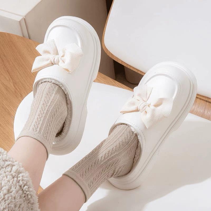 White bow cotton shoes, Black bow cotton shoes