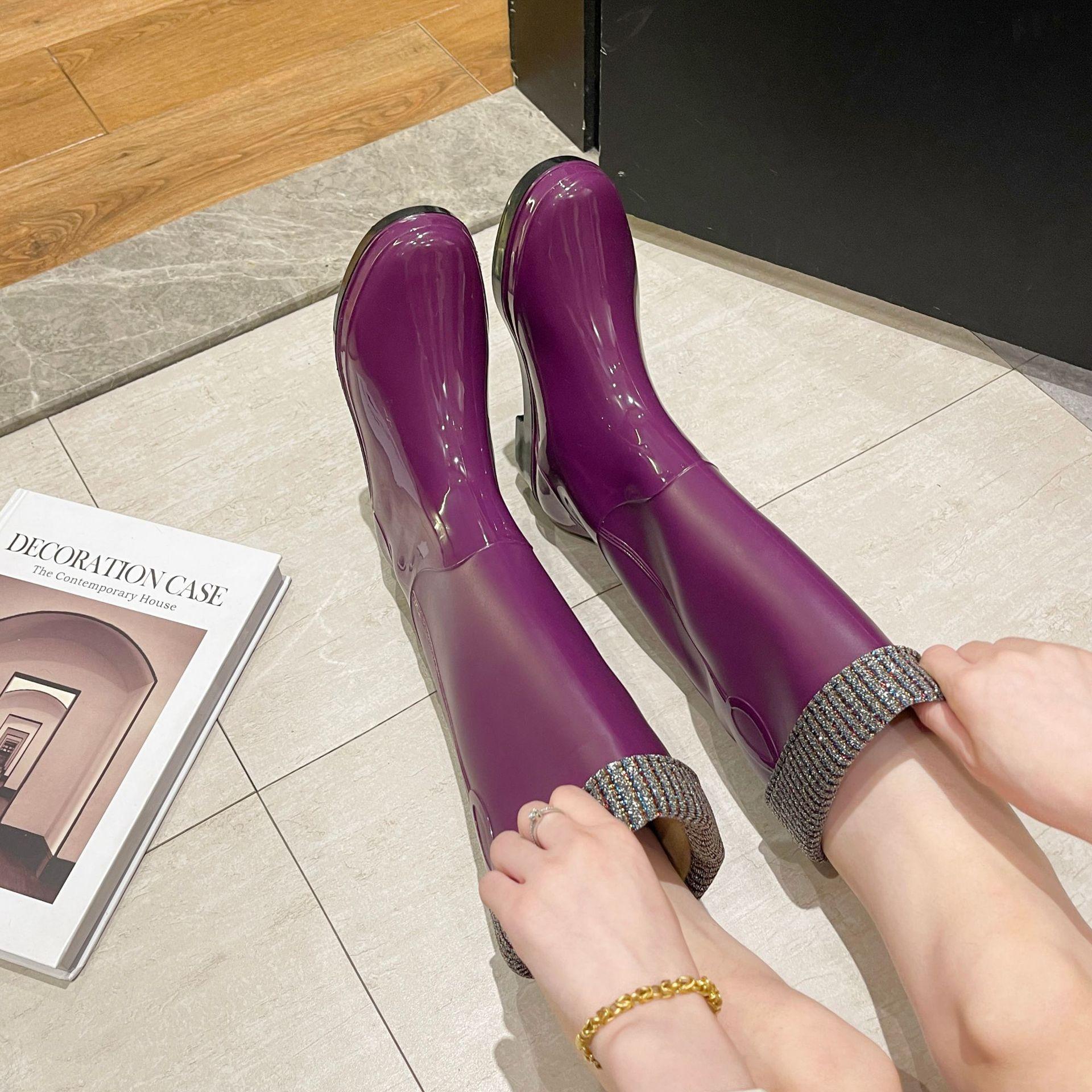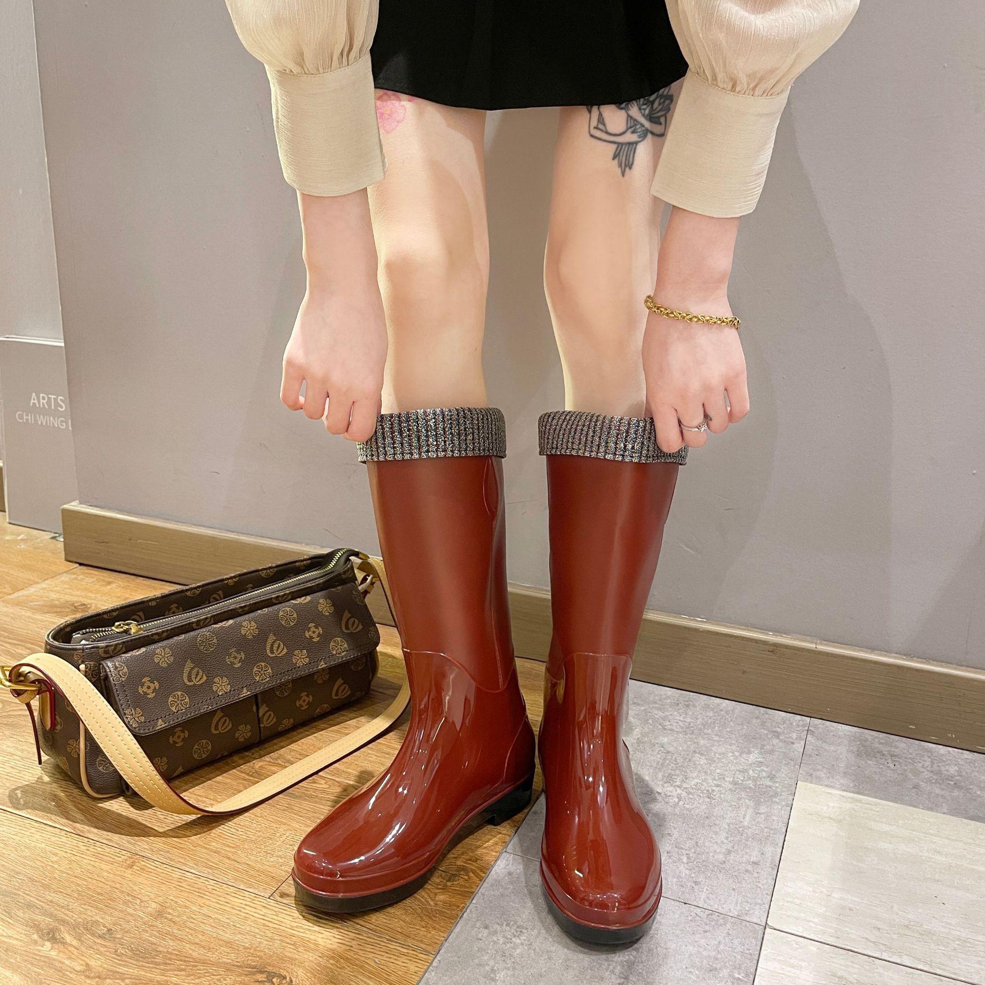 Botas de lluvia de tubo alto de belleza Sijie Botas de lluvia impermeables para mujer Sobrezapatos antideslizantes Zapatos para agua Zapatos de goma Forrado de vellón Grueso Moda Ropa exterior