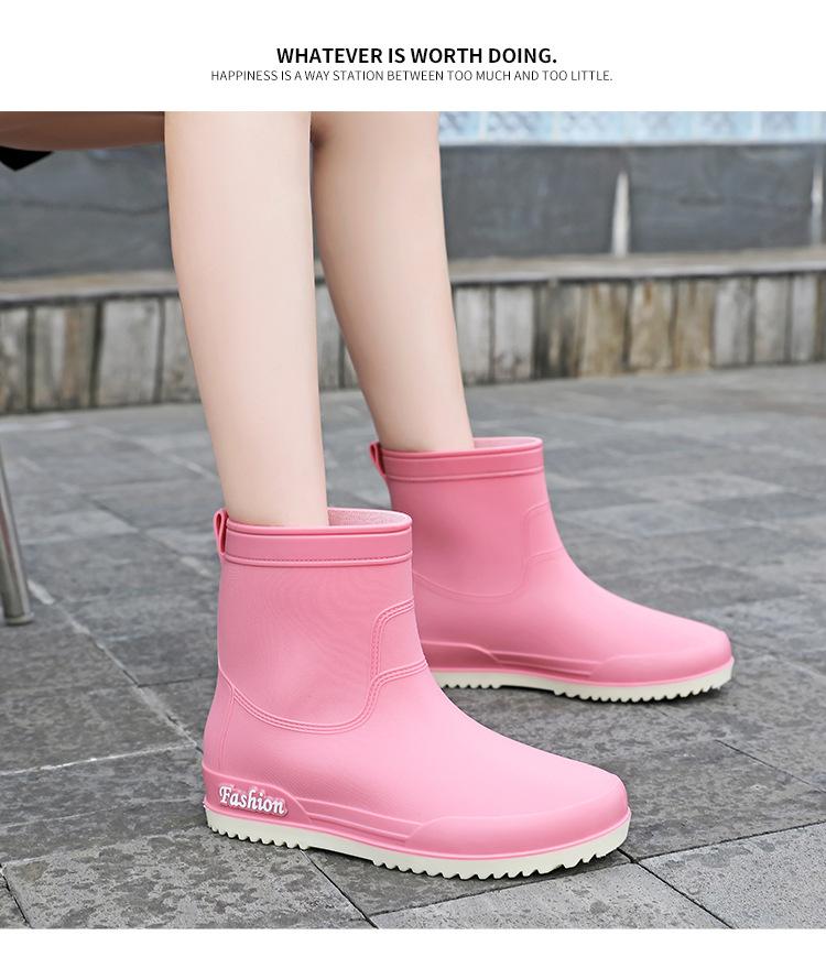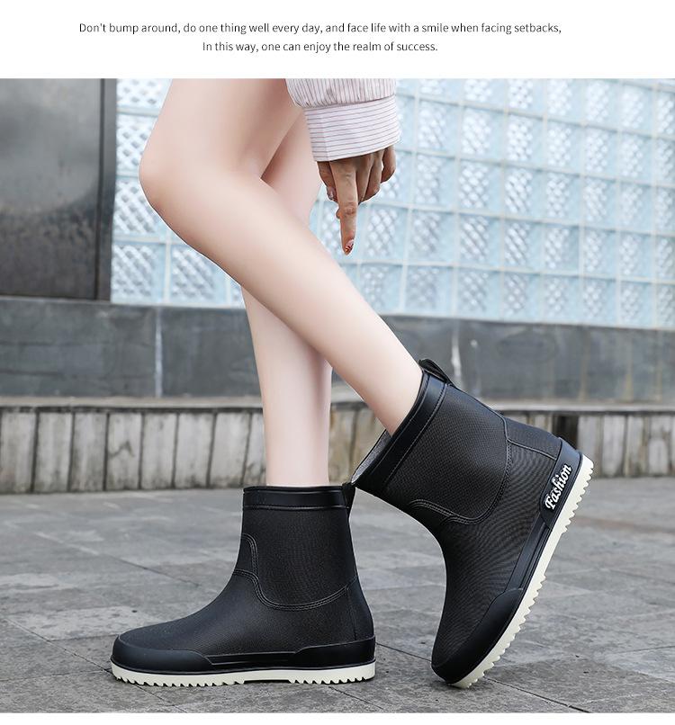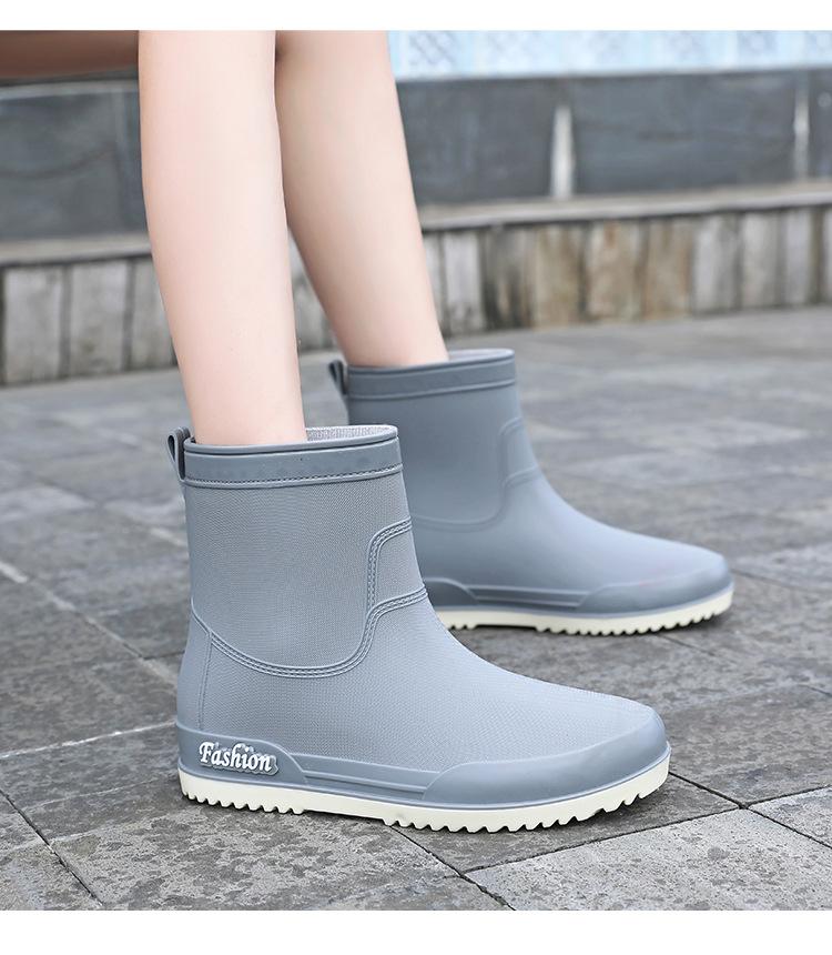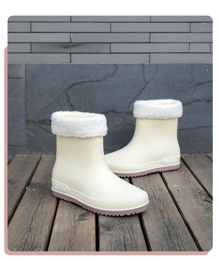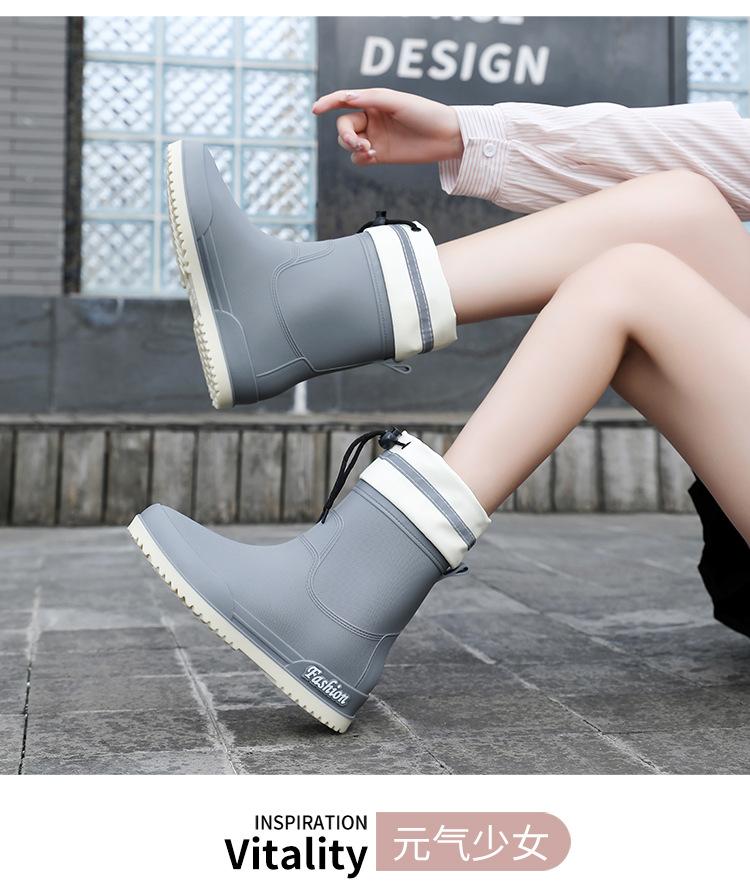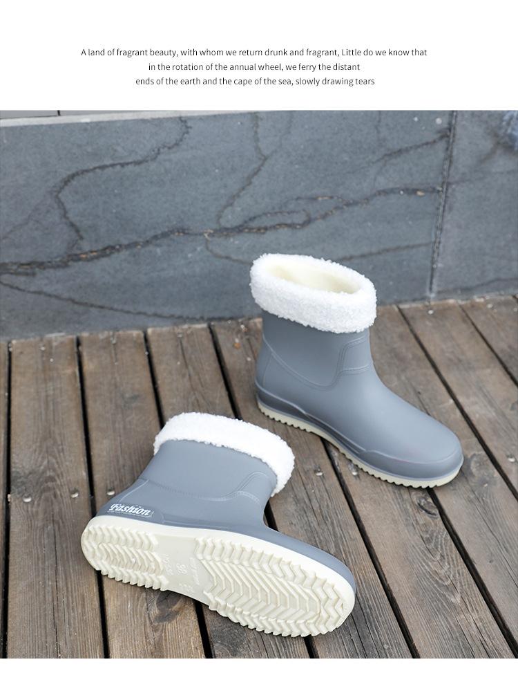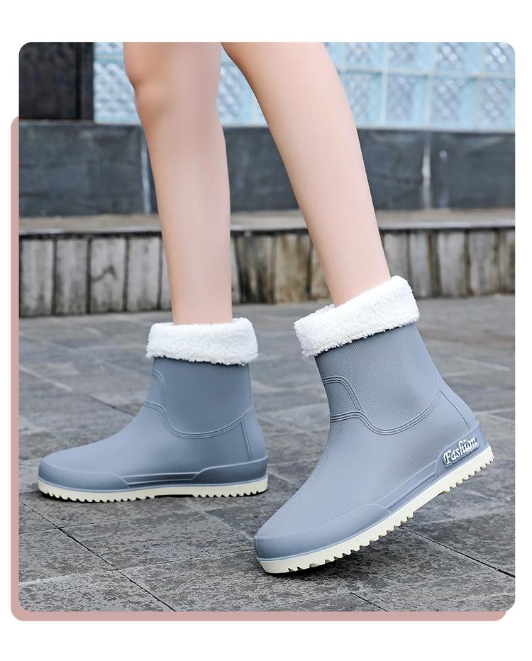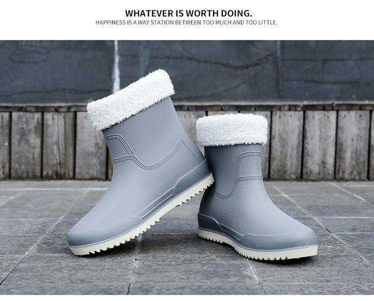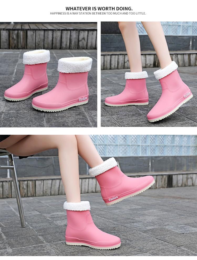 Botas de lluvia impermeables para mujer, moda para estudiantes, antideslizantes, de tubo corto, de goma, para exterior, cocina, forro polar, cálidas, botas de agua para mujer, venta al por mayor