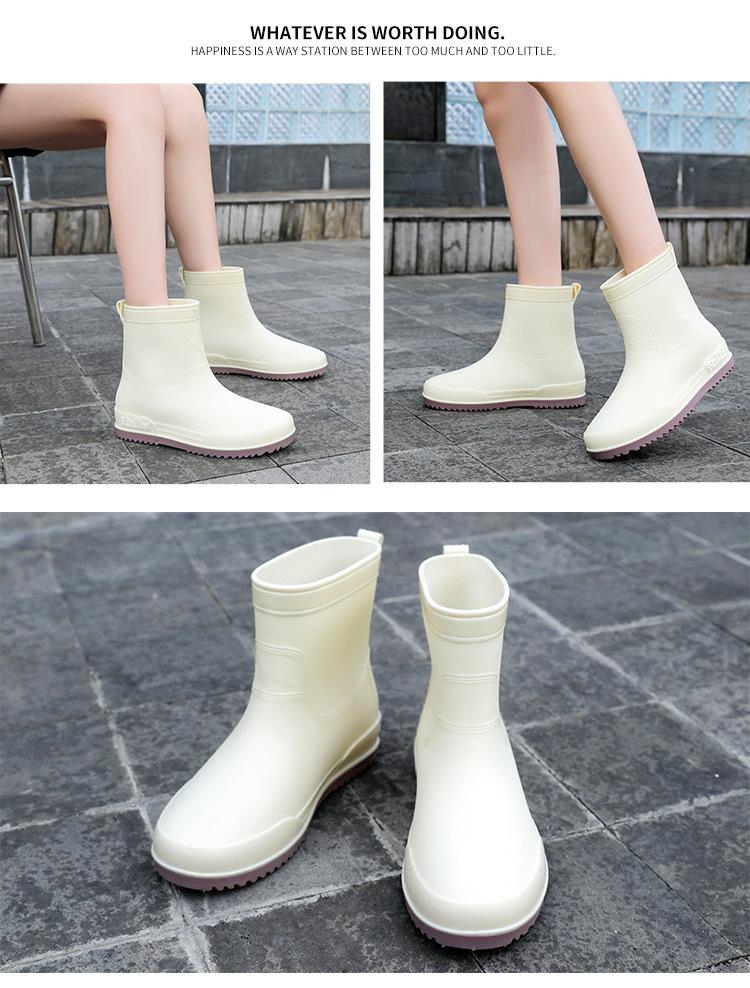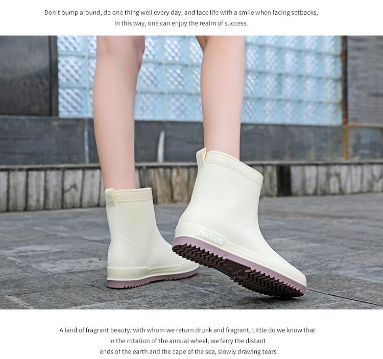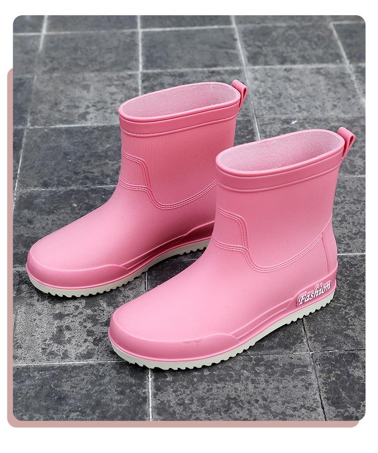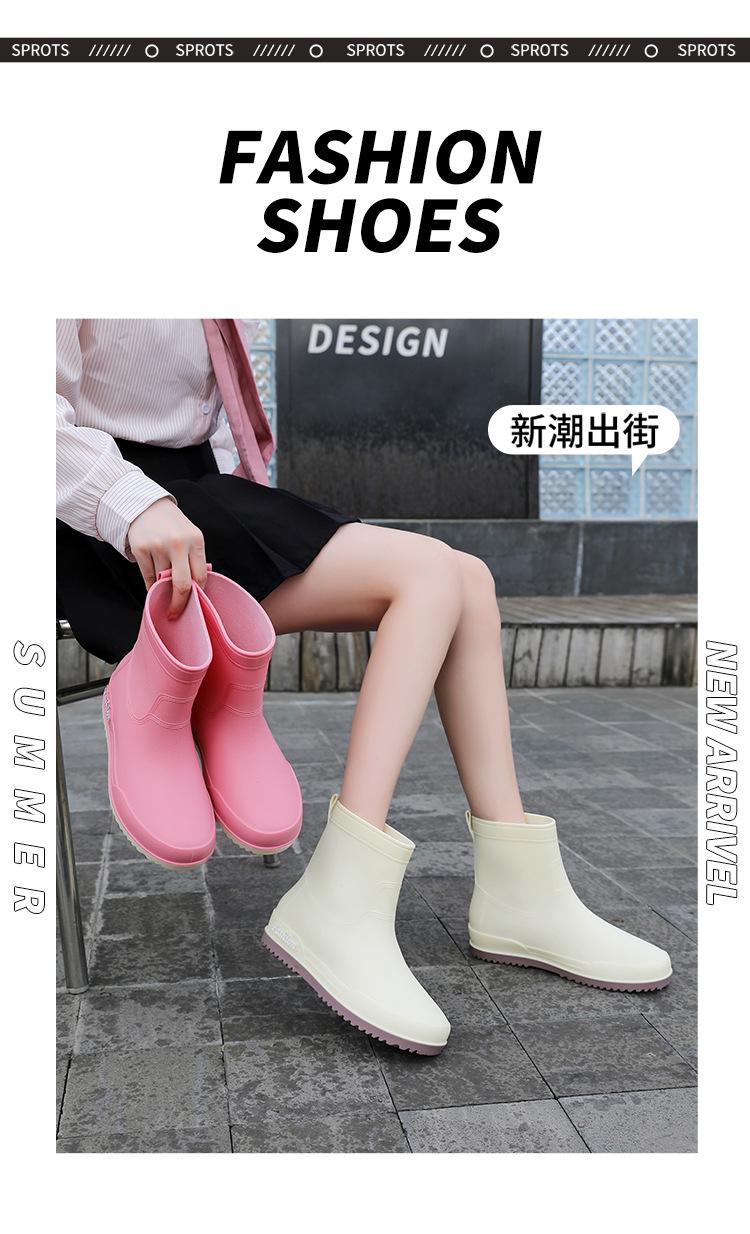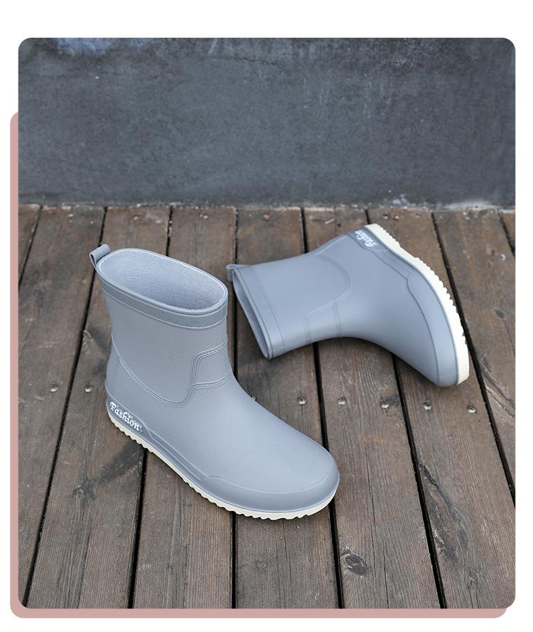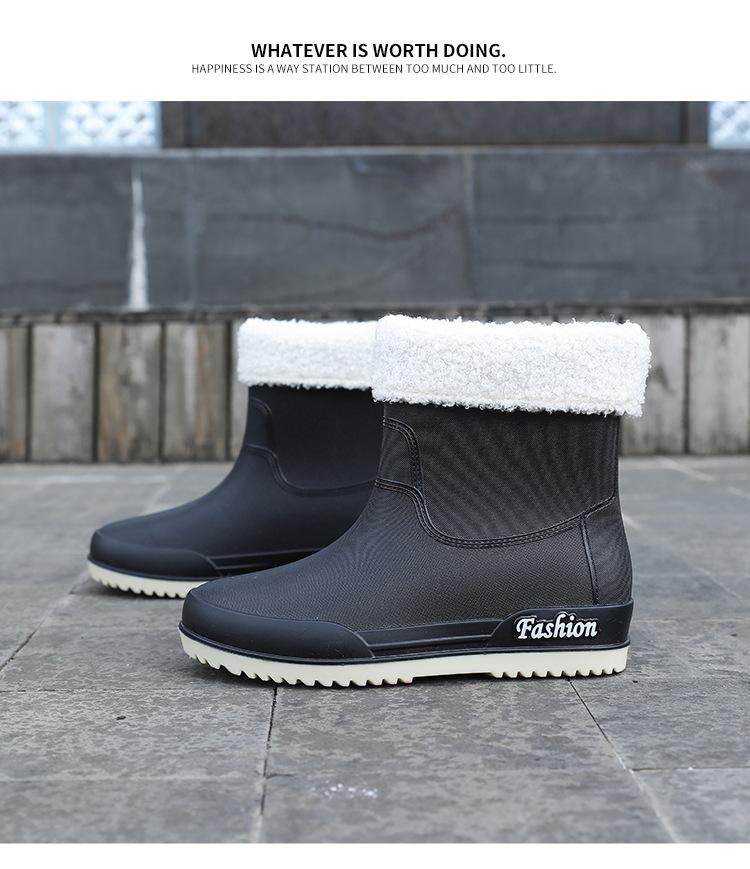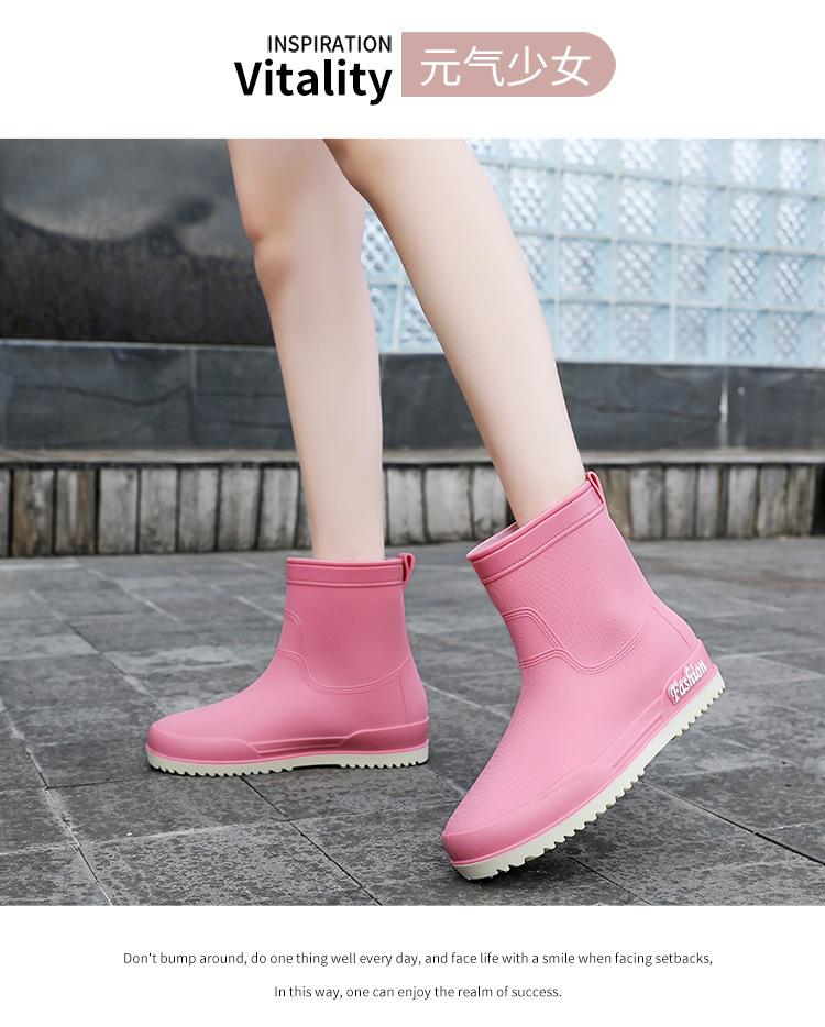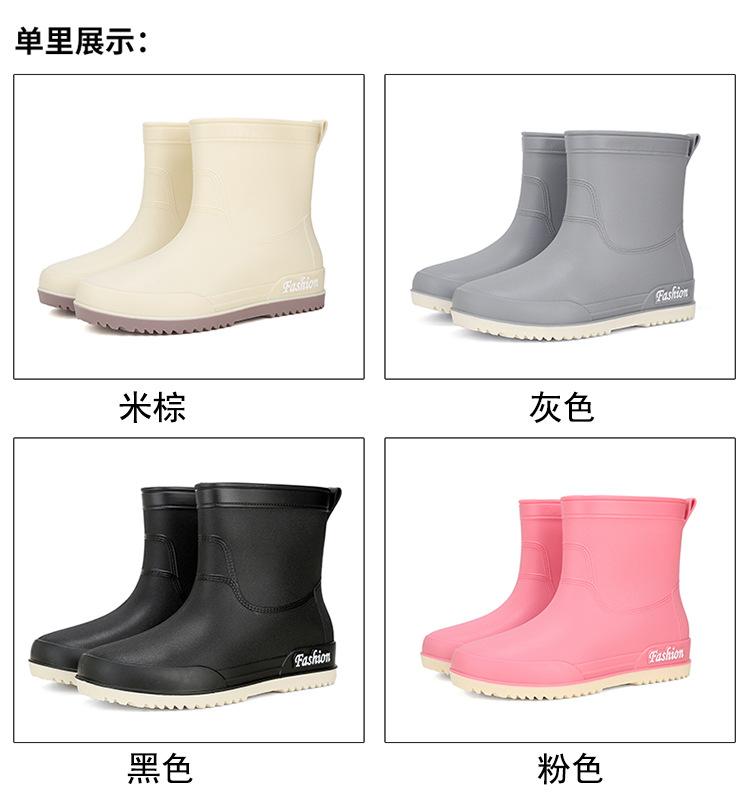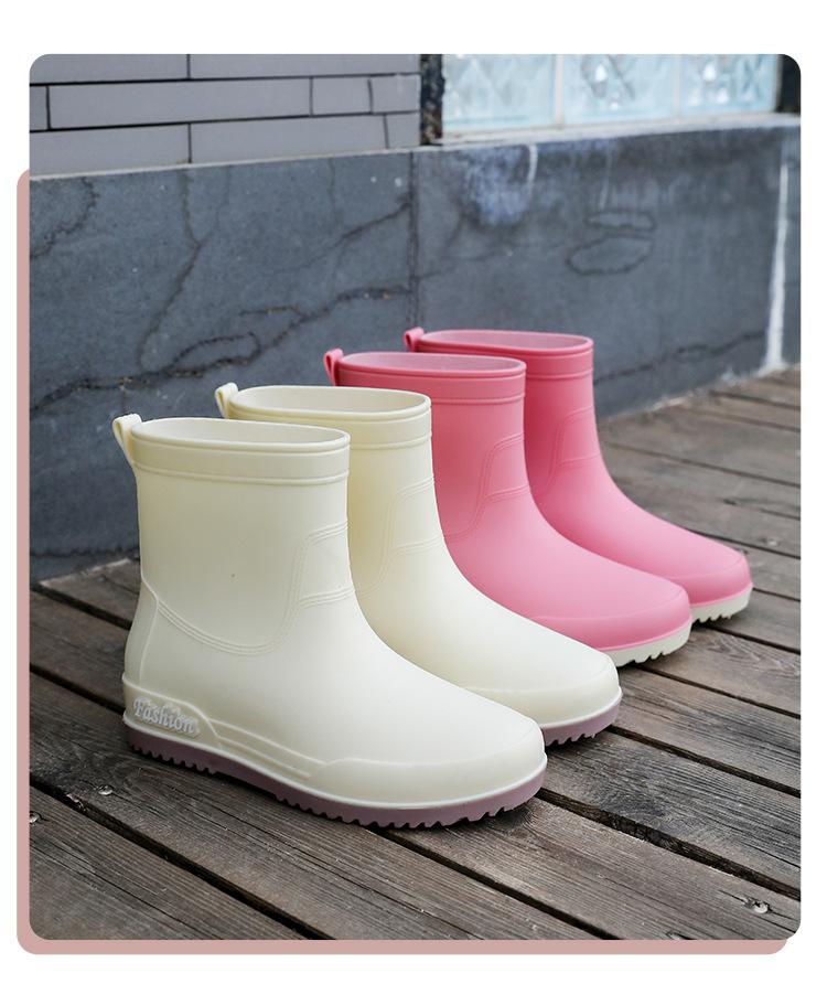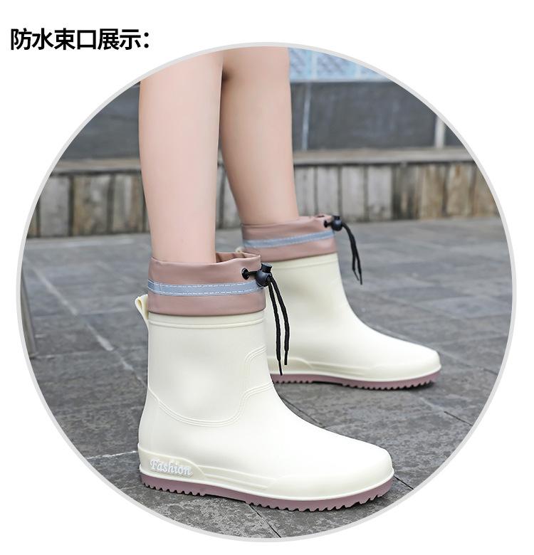 Botas de lluvia impermeables para mujer, moda para estudiantes, antideslizantes, de tubo corto, de goma, para exterior, cocina, forro polar, cálidas, botas de agua para mujer, venta al por mayor