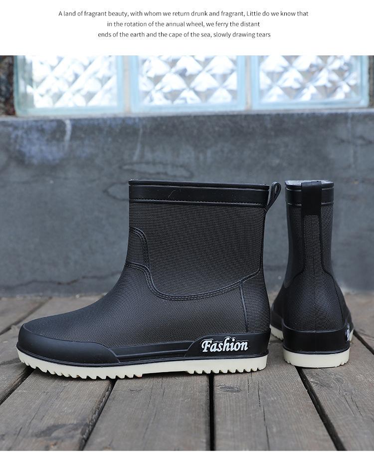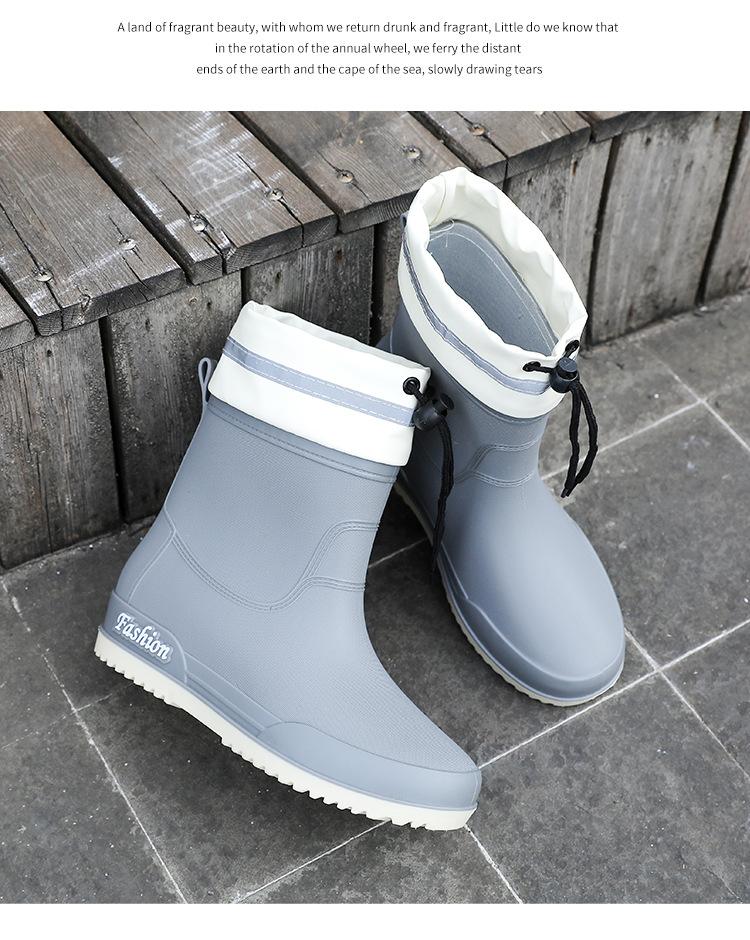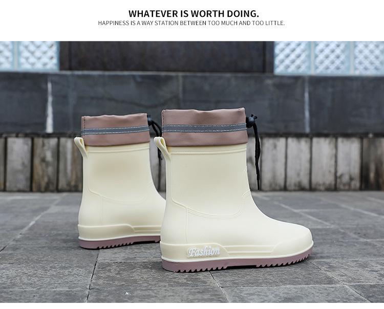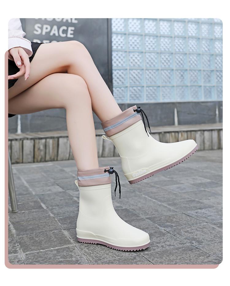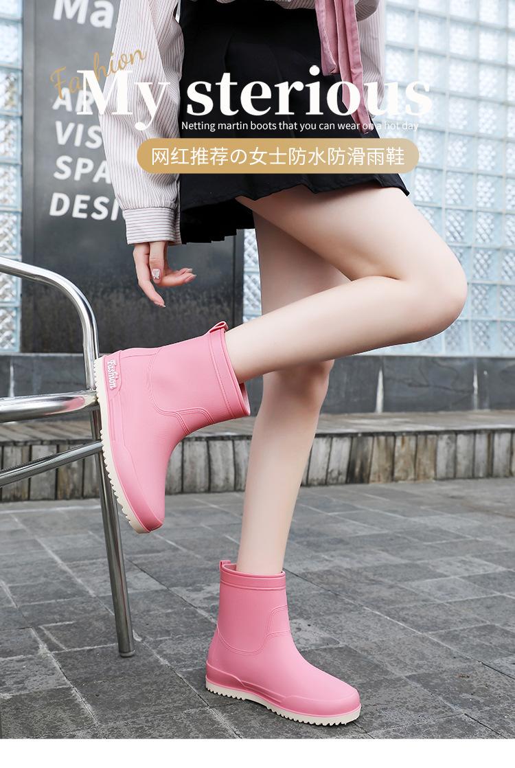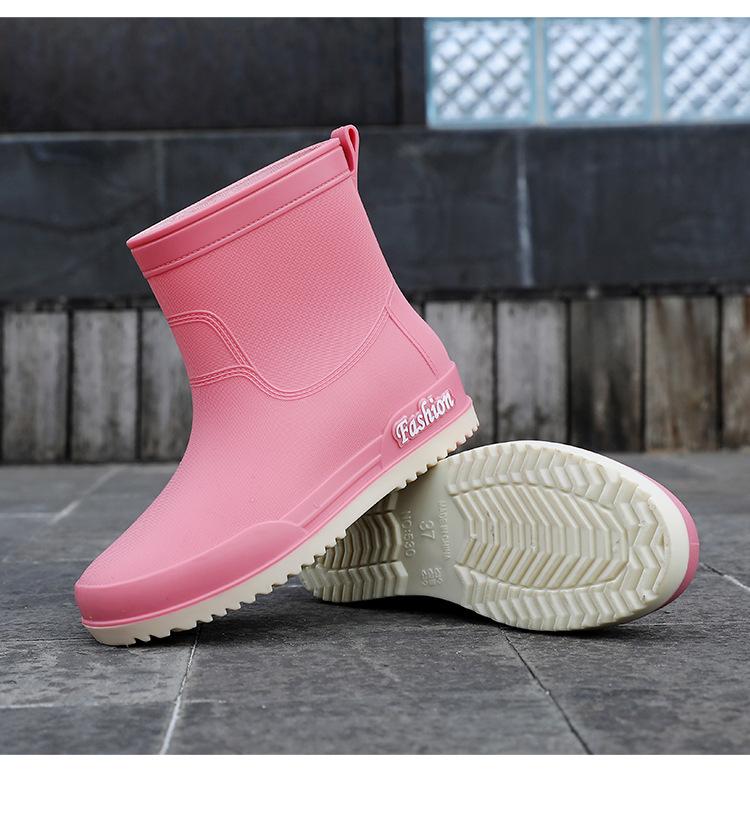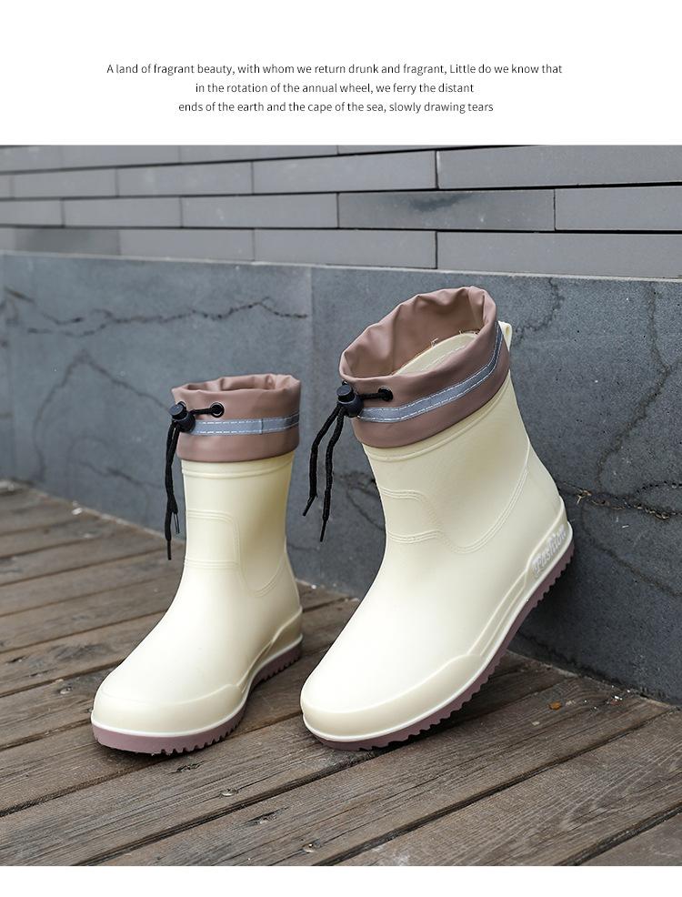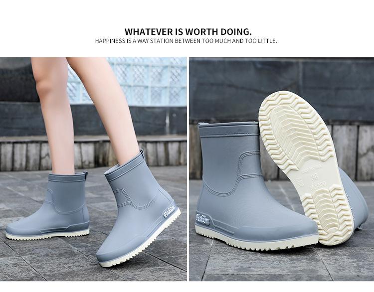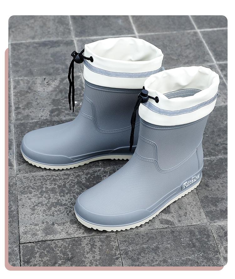 Botas de lluvia impermeables para mujer, moda para estudiantes, antideslizantes, de tubo corto, de goma, para exterior, cocina, forro polar, cálidas, botas de agua para mujer, venta al por mayor