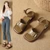 2025 Nuevas Sandalias de Verano Zapatos Romanos Retro Franceses para Mujer Sandalias de Tira Única Tacón Bajo Talla Grande Zapatos de Mujer