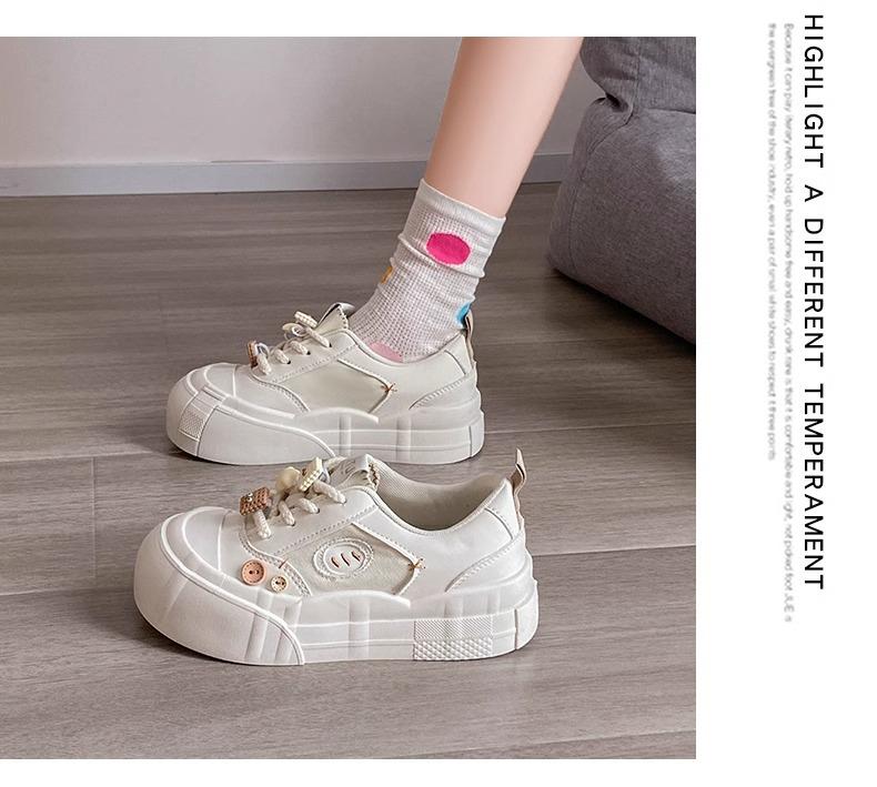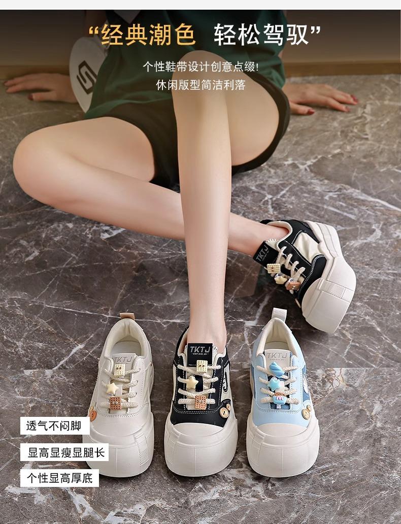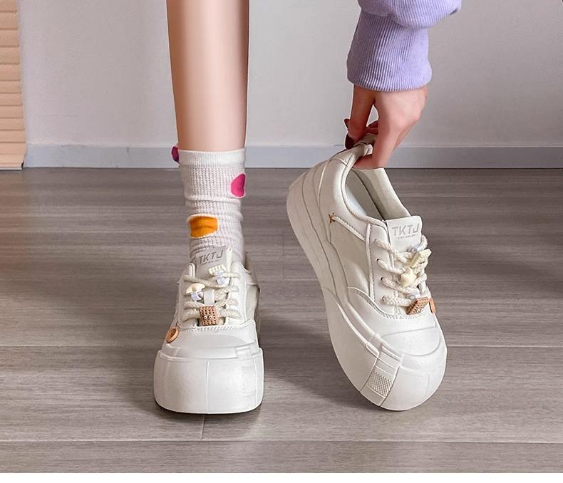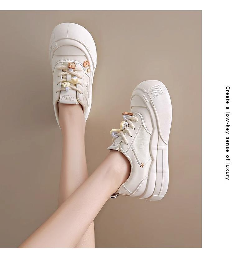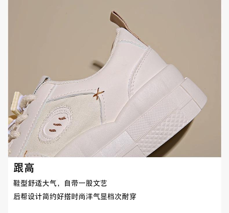 Zapatos blancos para mujer, deportivos informales, transpirables, combinables, blancos, con plataforma y lona, para principios de otoño 2024.