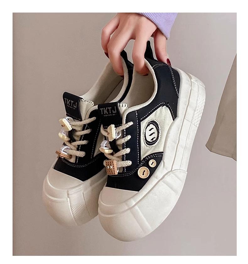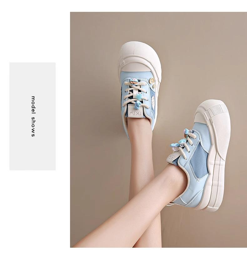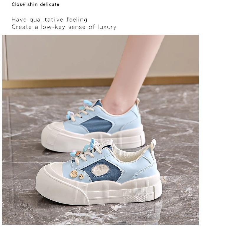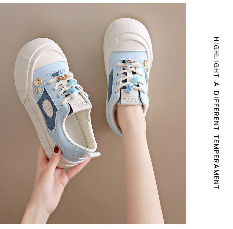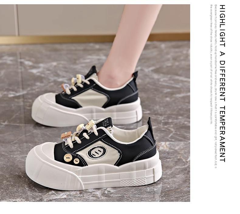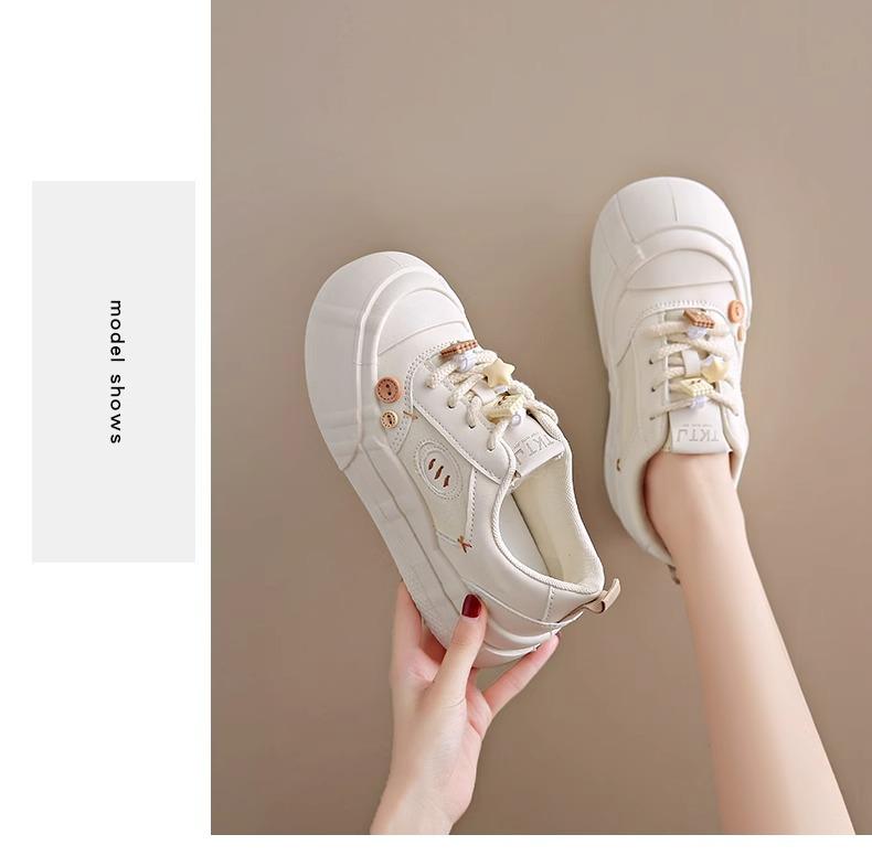 Zapatos blancos para mujer, deportivos informales, transpirables, combinables, blancos, con plataforma y lona, para principios de otoño 2024.
