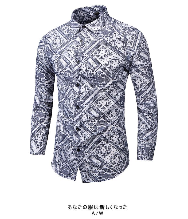 Compra Camisa de manga larga de talla grande para hombre, nueva camisa informal con solapa y estampado floral fino de comercio exterior, primavera y otoño de 2022 al por mayor en Joom.pro