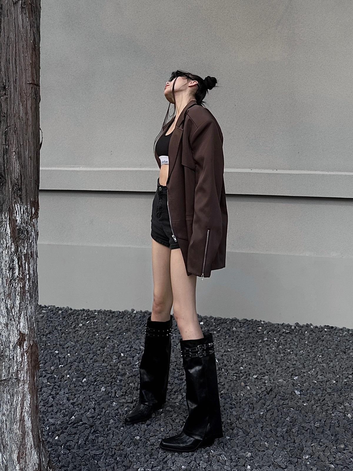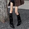 Compra Botas vaqueras occidentales con remaches de aspecto entallado para mujer, novedad de verano de 2024, con bordados puntiagudos, largas y oscuras, con un toque picante. al por mayor en Joom.pro