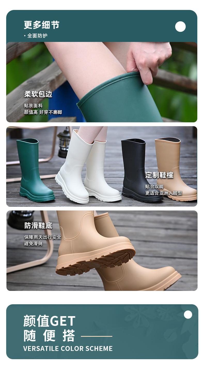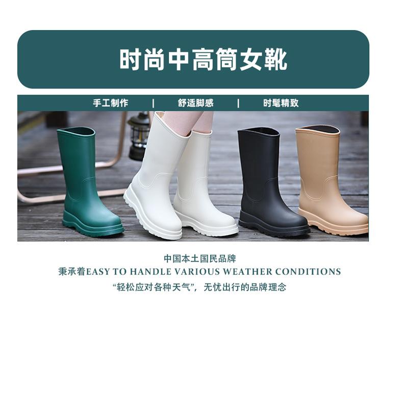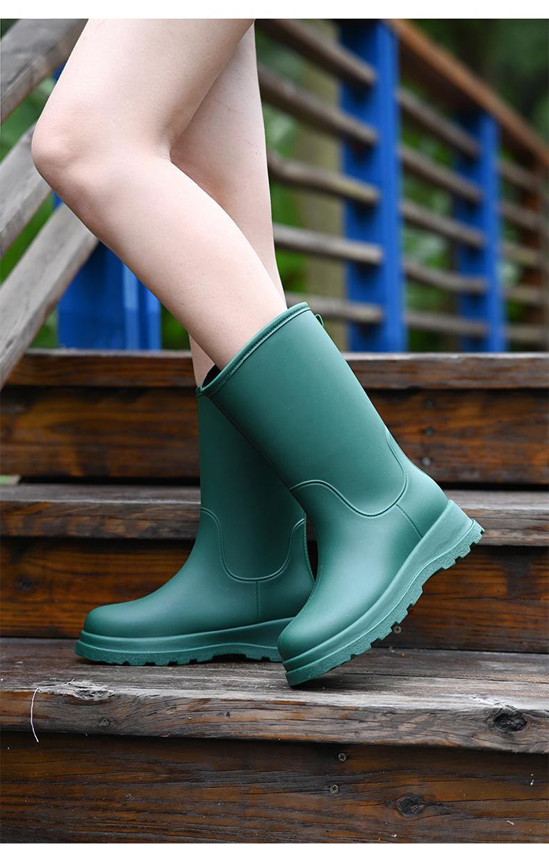 Botas de lluvia clásicas de altura media para mujer, botas de lluvia multicolor sencillas para mujer, zapatos impermeables para viajes en días lluviosos, zapatos de goma para mujer al por mayor