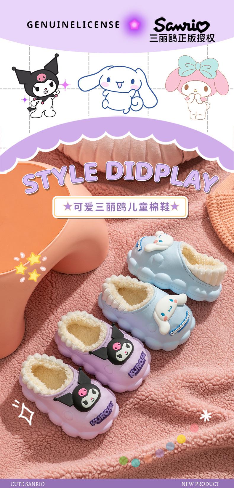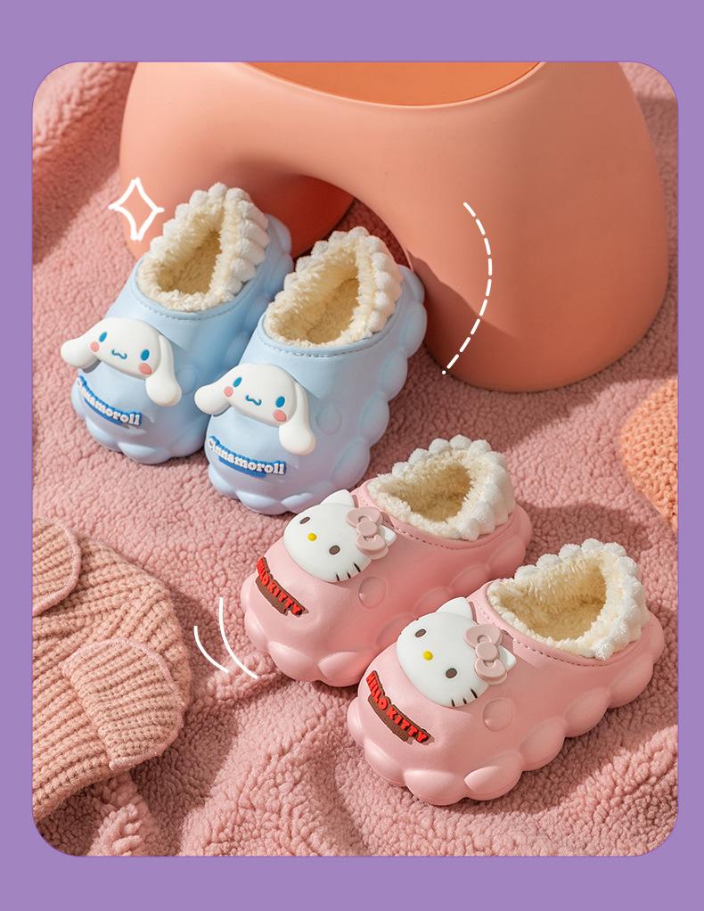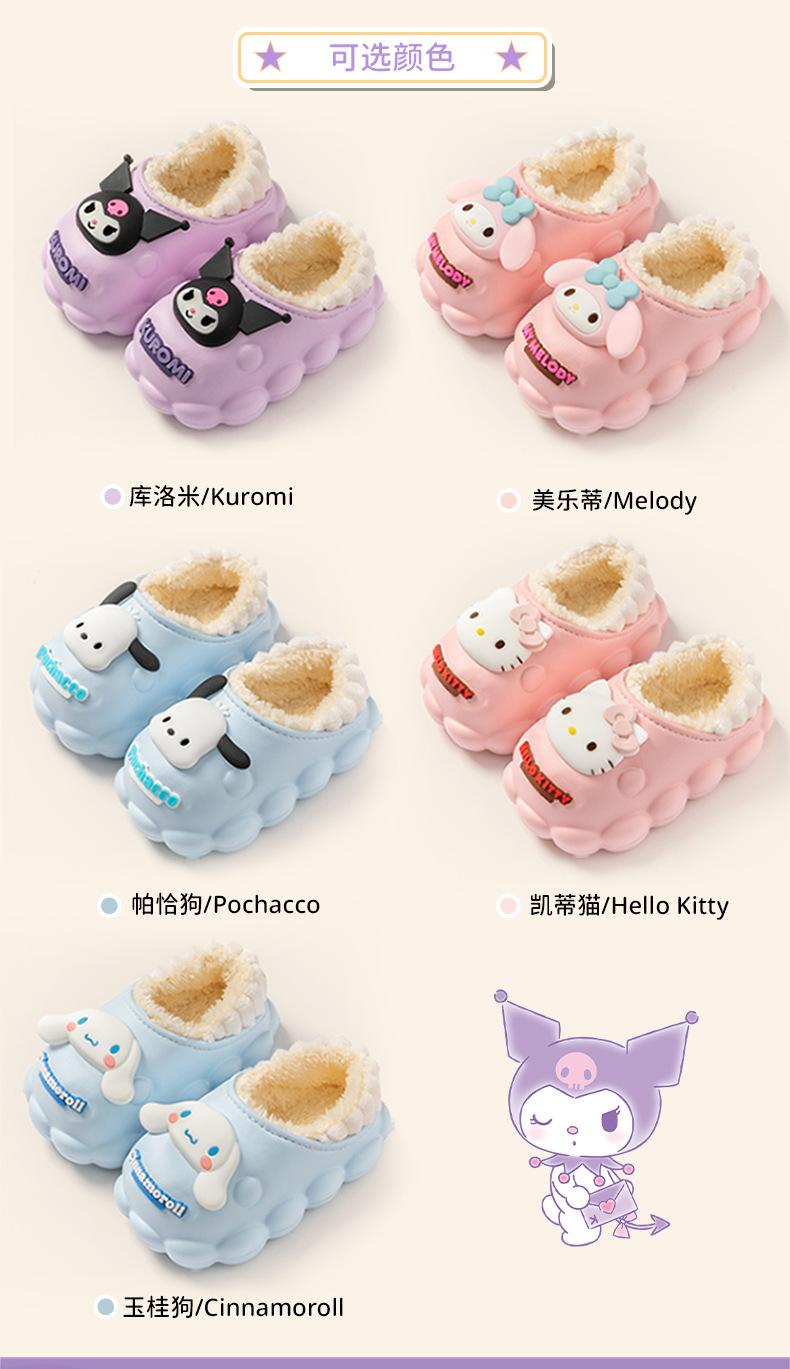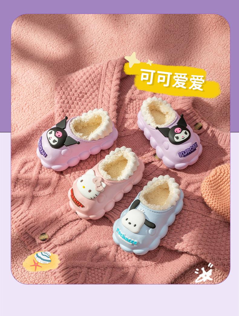 Zapatillas de algodón para niños Sanrio, zapatillas antideslizantes para interiores y exteriores, cálidas y de algodón para invierno, zapatillas ligeras e impermeables para niñas.