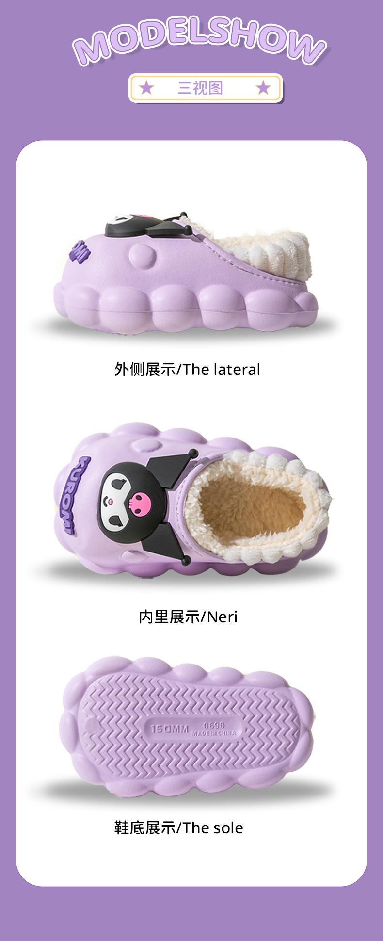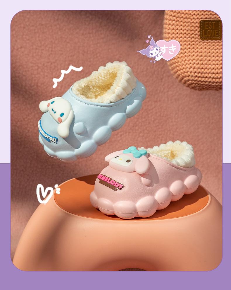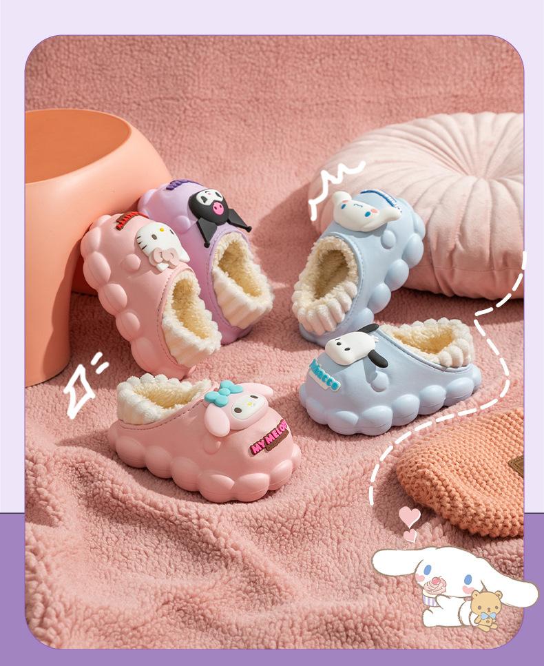 Zapatillas de algodón para niños Sanrio, zapatillas antideslizantes para interiores y exteriores, cálidas y de algodón para invierno, zapatillas ligeras e impermeables para niñas.
