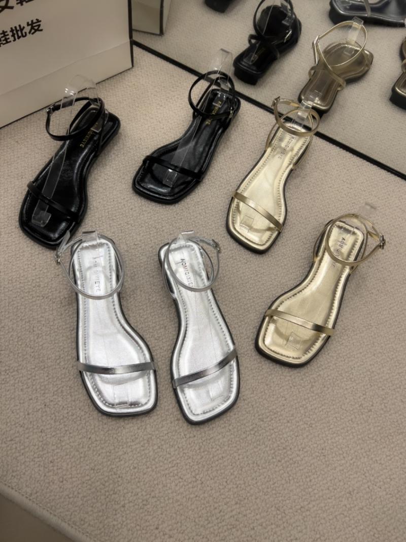 Compra 2025 Nuevo Estilo de Verano Punta Cuadrada Francesa Moda Versátil Sandalias de Hebilla Slip-On Flats para Mujer Punta Abierta Zapatos Romanos al por mayor en Joom.pro