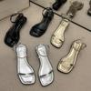 2025 Nuevo Estilo de Verano Punta Cuadrada Francesa Moda Versátil Sandalias de Hebilla Slip-On Flats para Mujer Punta Abierta Zapatos Romanos