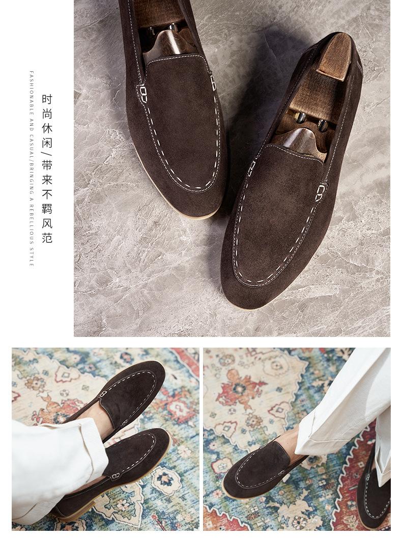 Nuevos zapatos casuales de cuero para hombre, de negocios, con acabado antiterciopelo y cuero esmerilado, mocasines sin cordones.