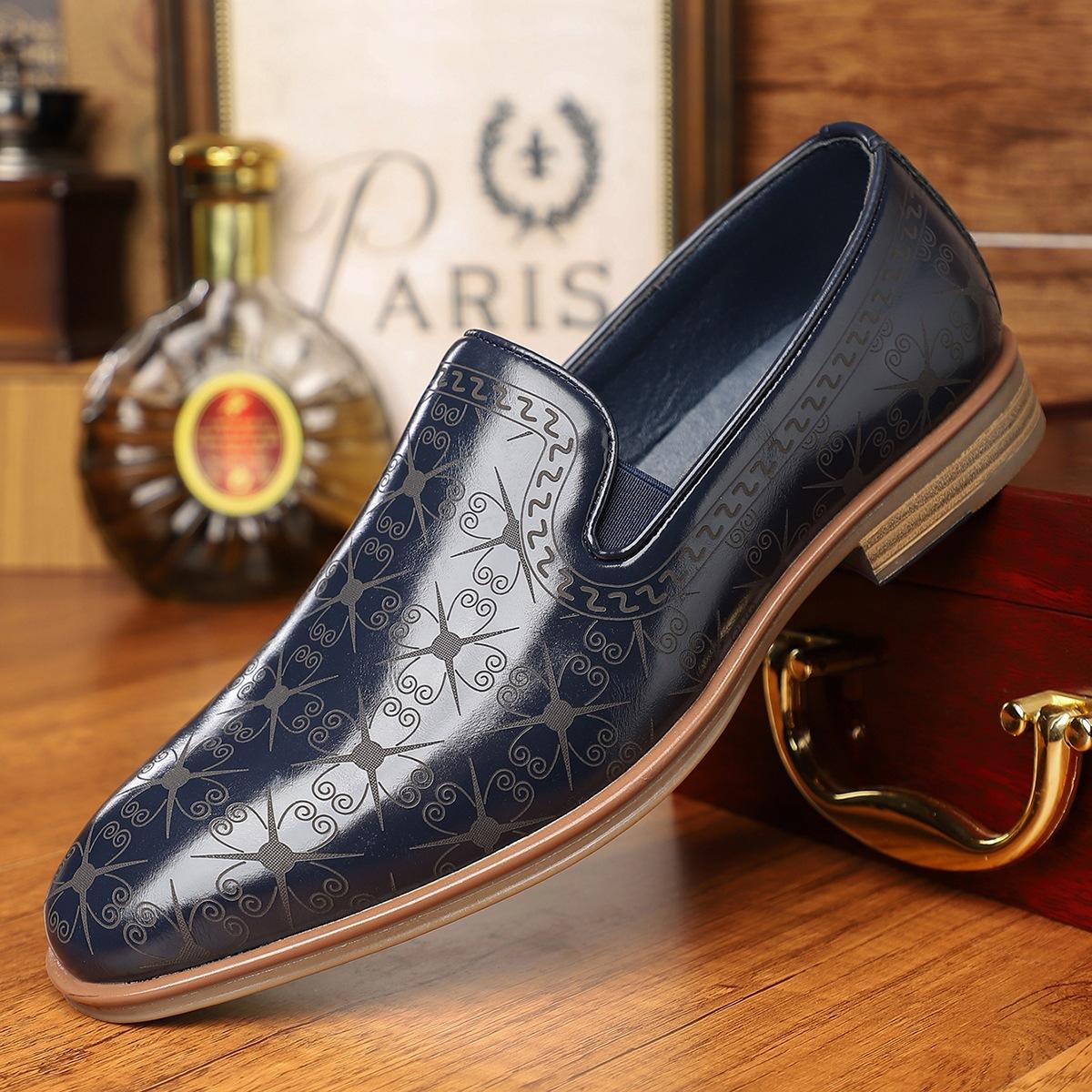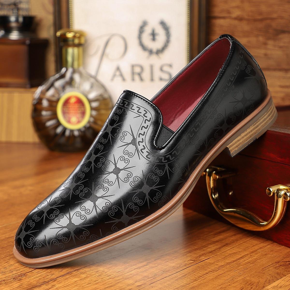 Zapatos de cuero informales de estilo británico para negocios, zapatos de cuero sin cordones de alta gama para hombres, nuevos zapatos de vestir de negocios con punta.