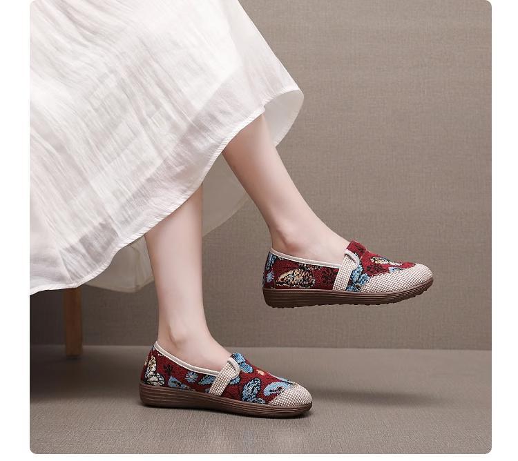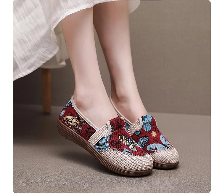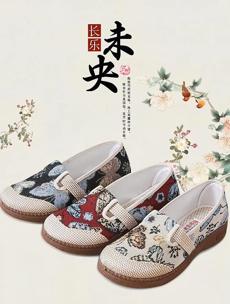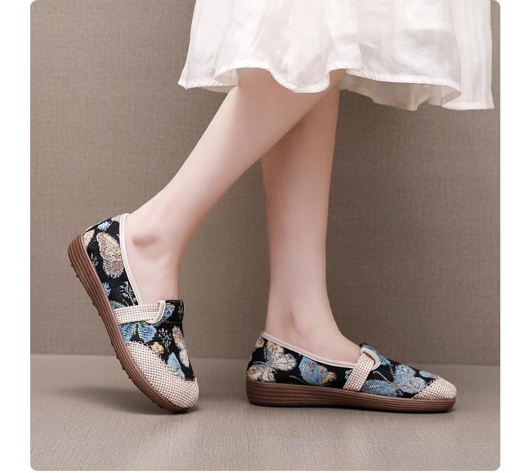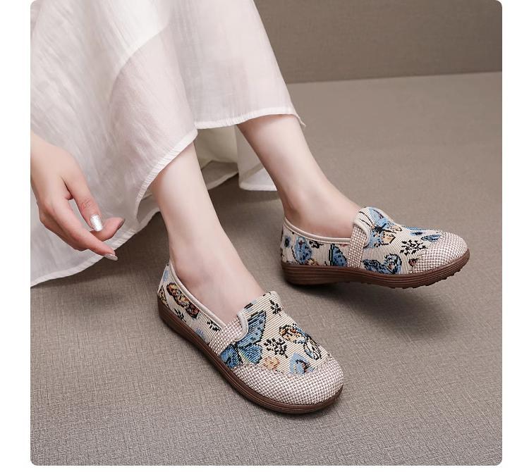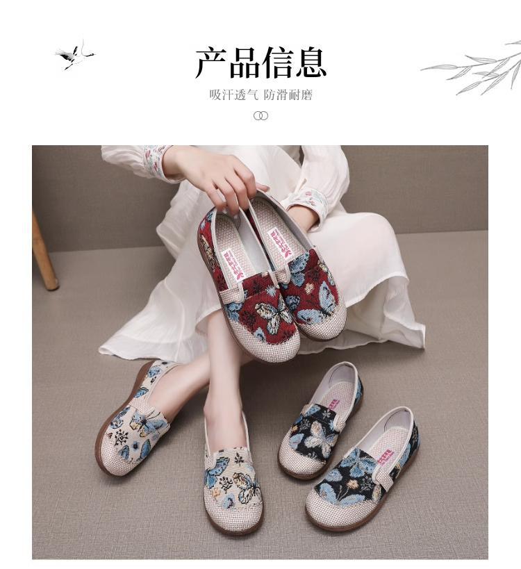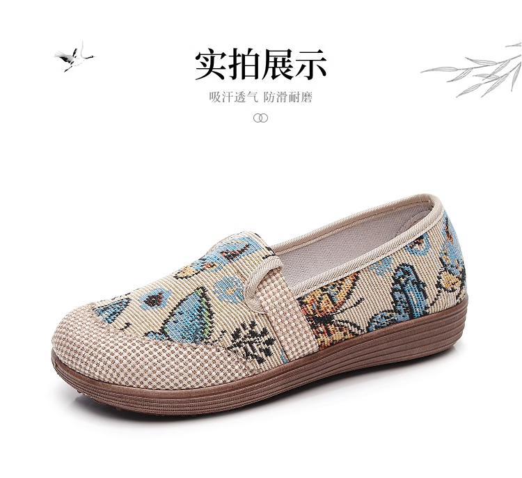 25 Verano Zapatos de Tela de Beijing Antiguo Zapatos de Mujer Primavera y Otoño Nuevos Transpirables Zapatos de Pescador Edad Media y Adulta Zapatos de Mamá sin Cordones Zapatos Individuales