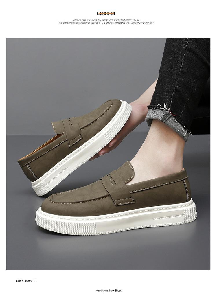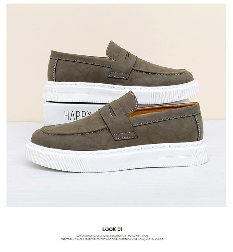 Mocasines de piel de vaca para hombre, zapatos slip-on casuales, zapatos de moda juvenil de suela gruesa, zapatillas deportivas para las cuatro estaciones, zapatos de cuero casuales retro para hombre