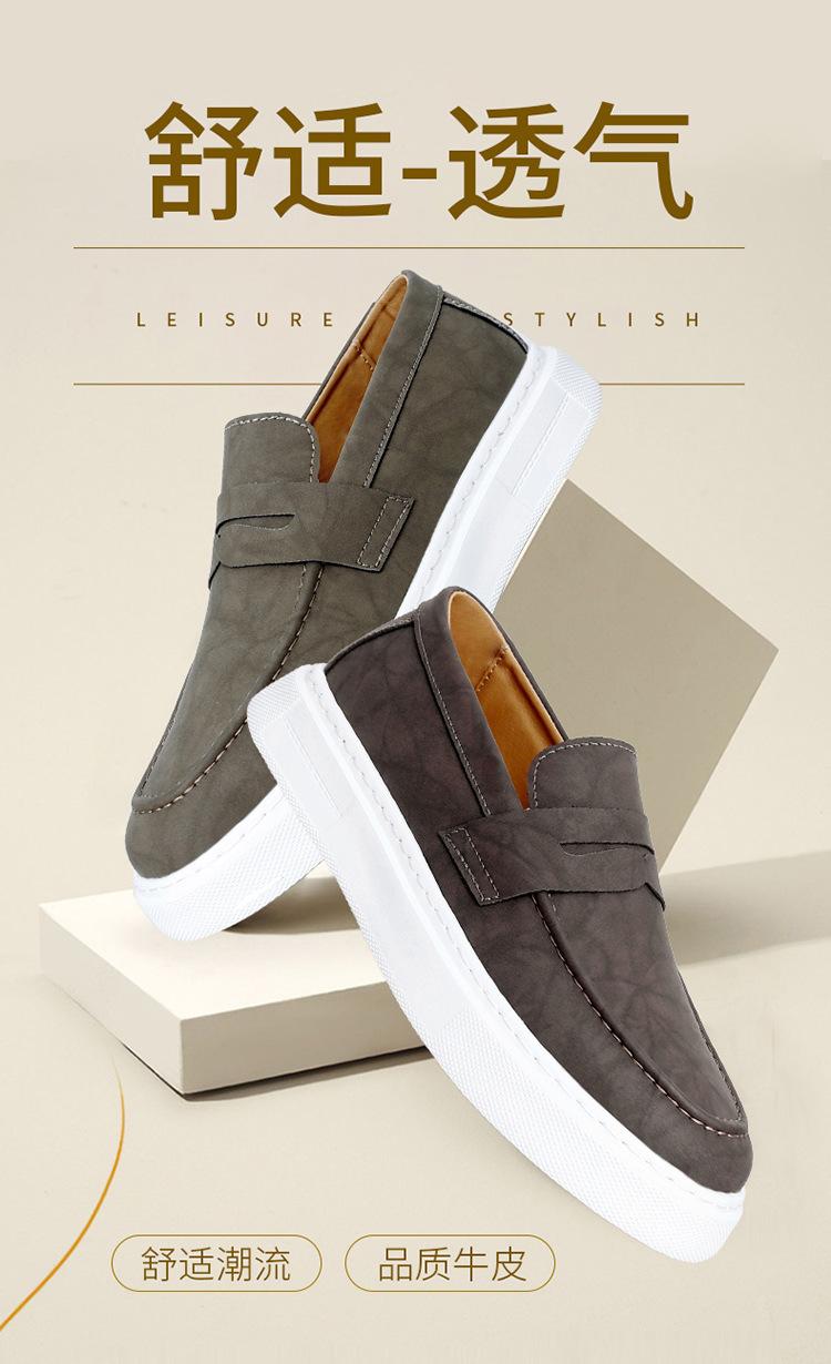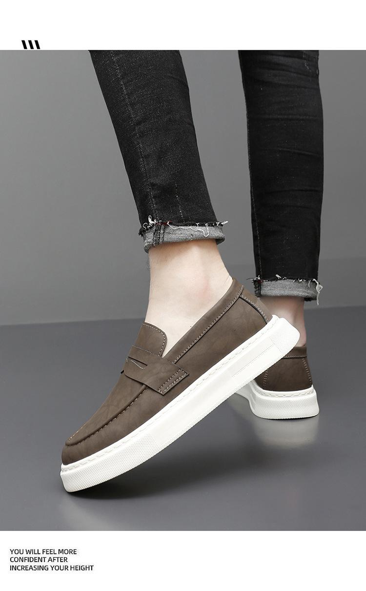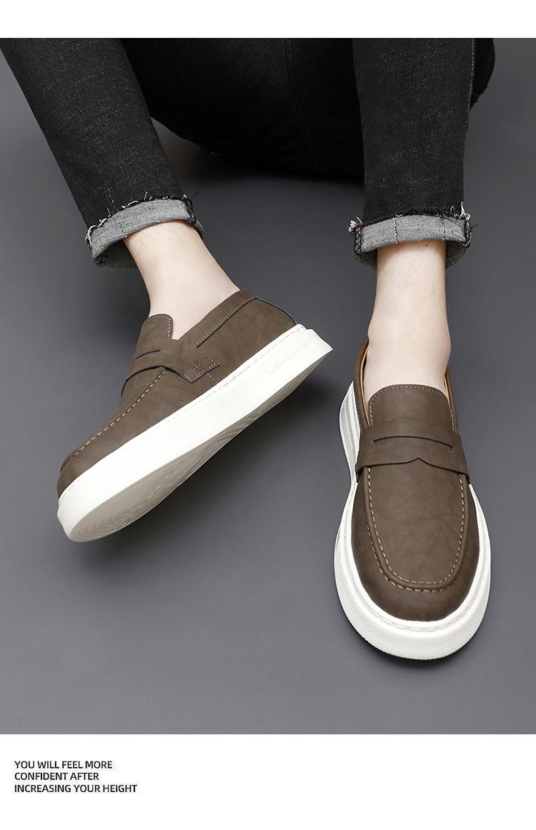 Mocasines de piel de vaca para hombre, zapatos slip-on casuales, zapatos de plataforma para jóvenes a la moda, zapatos de skate para las cuatro estaciones, zapatos de cuero casuales vintage para hombre