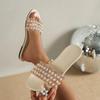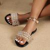2024 comercio exterior verano Nuevo talla grande plano Zapatillas de perlas Zapatillas de mujer rocío europeas y americanas zapatillas
