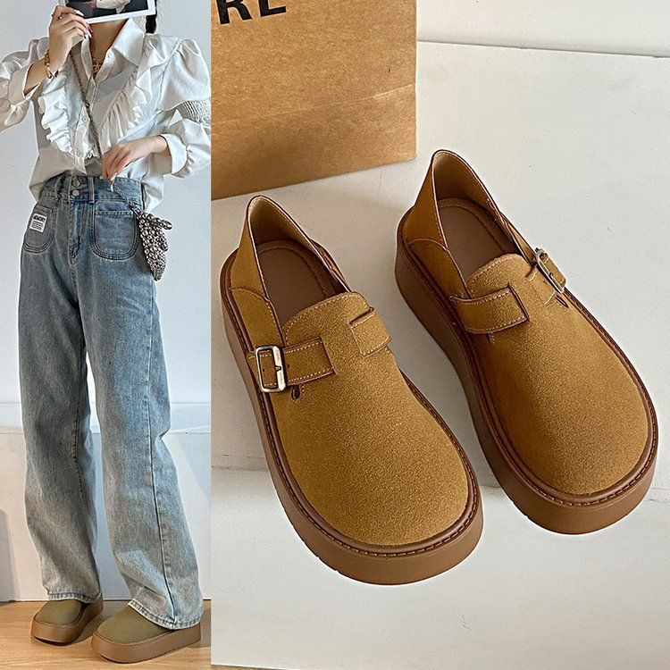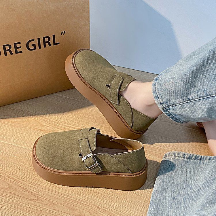 Zapatos de Mujer 2025 Otoño Nuevo Mocasines Slip-On de Punta Redonda y Suela Gruesa, Zapatos Birkenstock Planos Retro Quirky