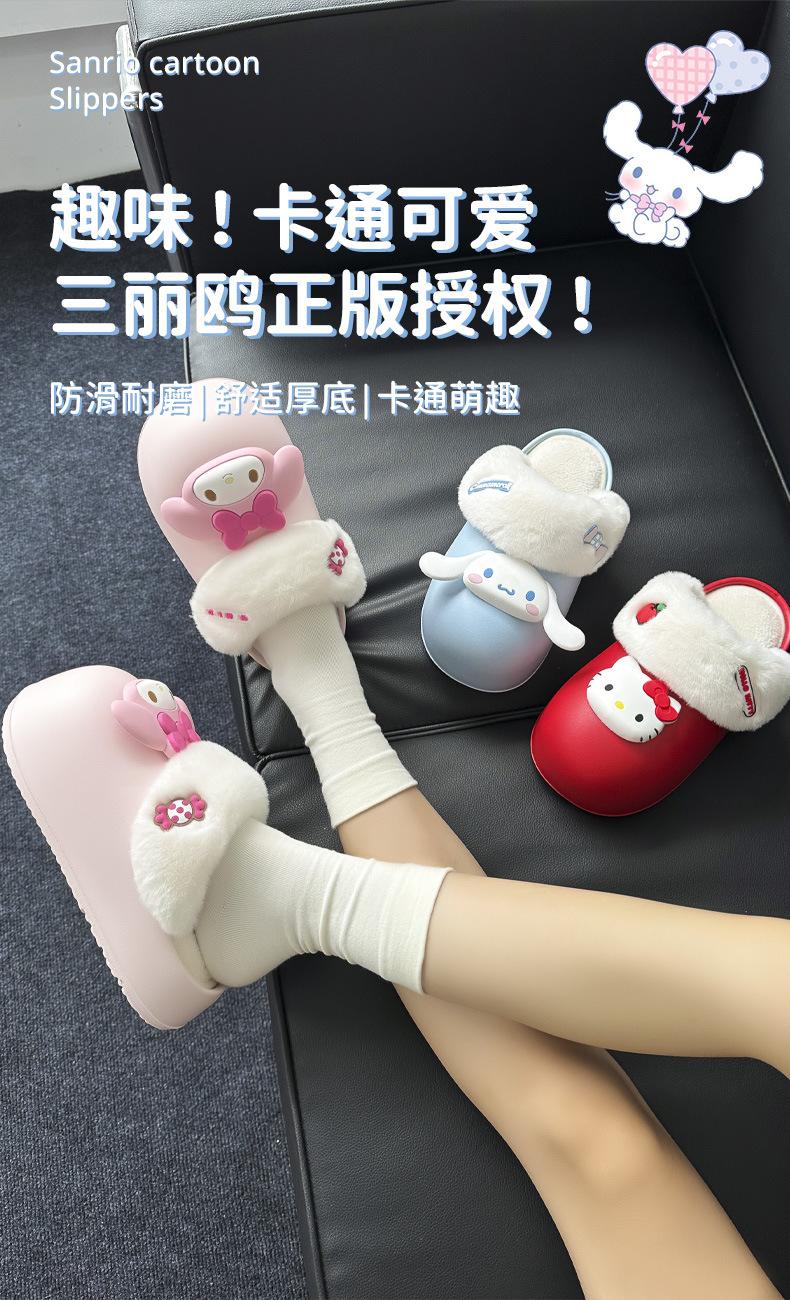 Sanrio articulación IP nuevo jade GUI perro pantuflas de algodón mujeres otoño e invierno interior hogar lindo pantuflas impermeables mujeres