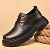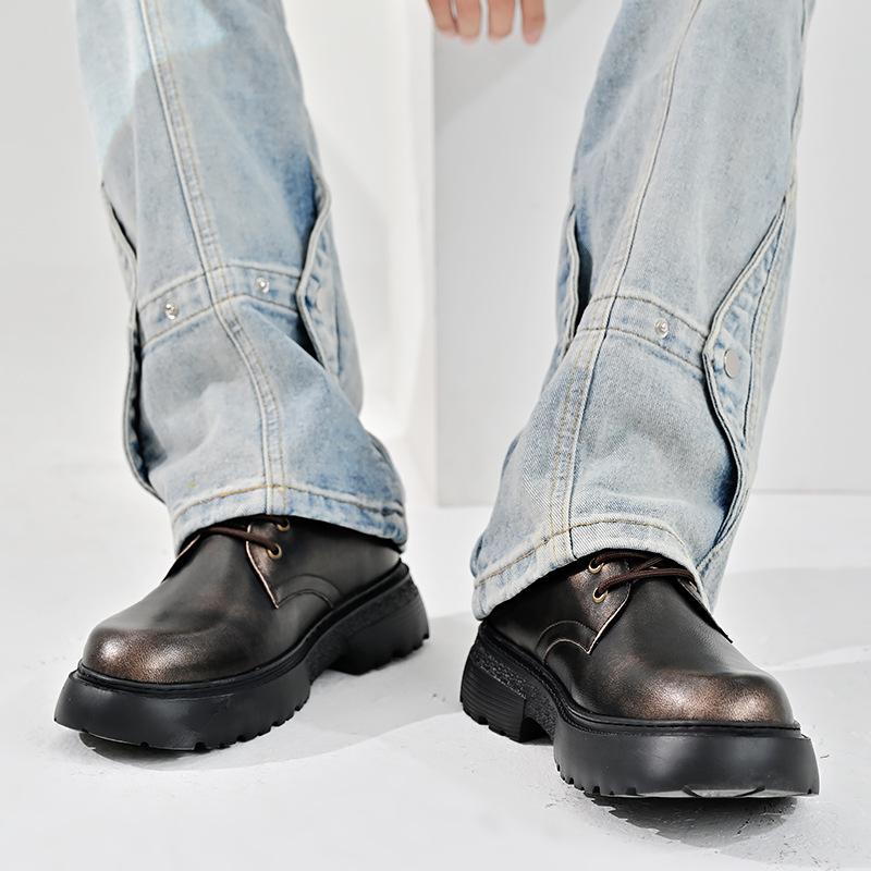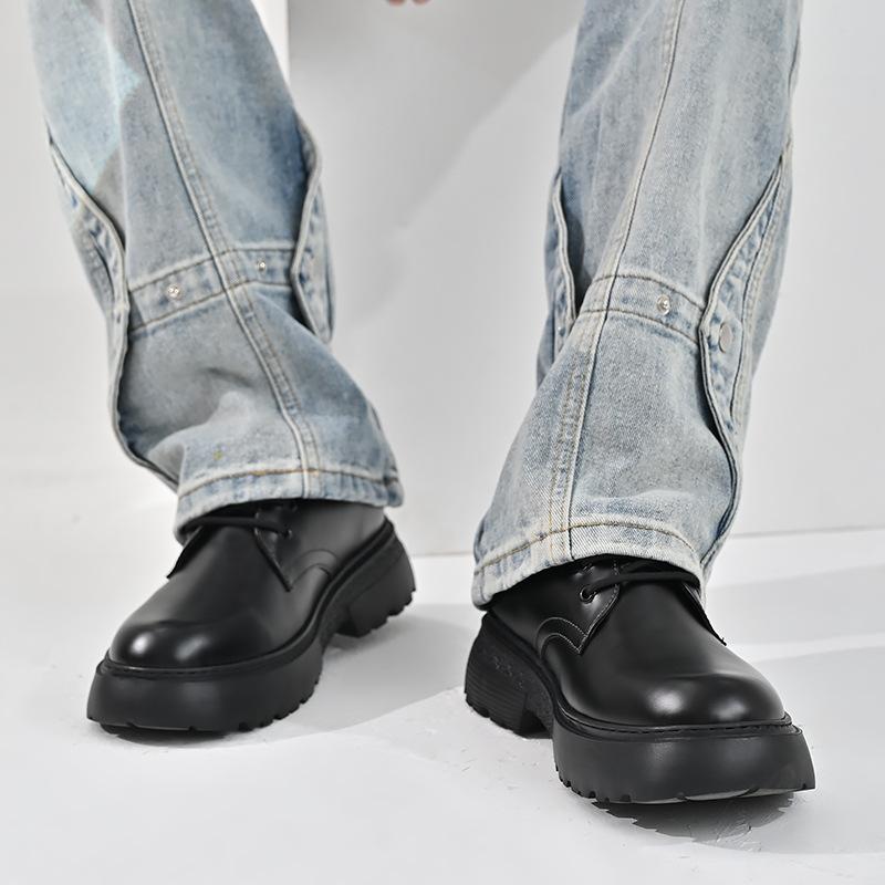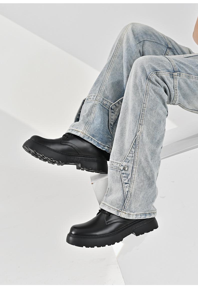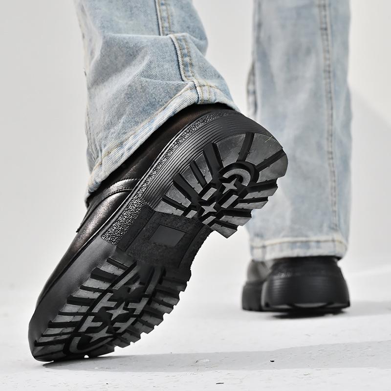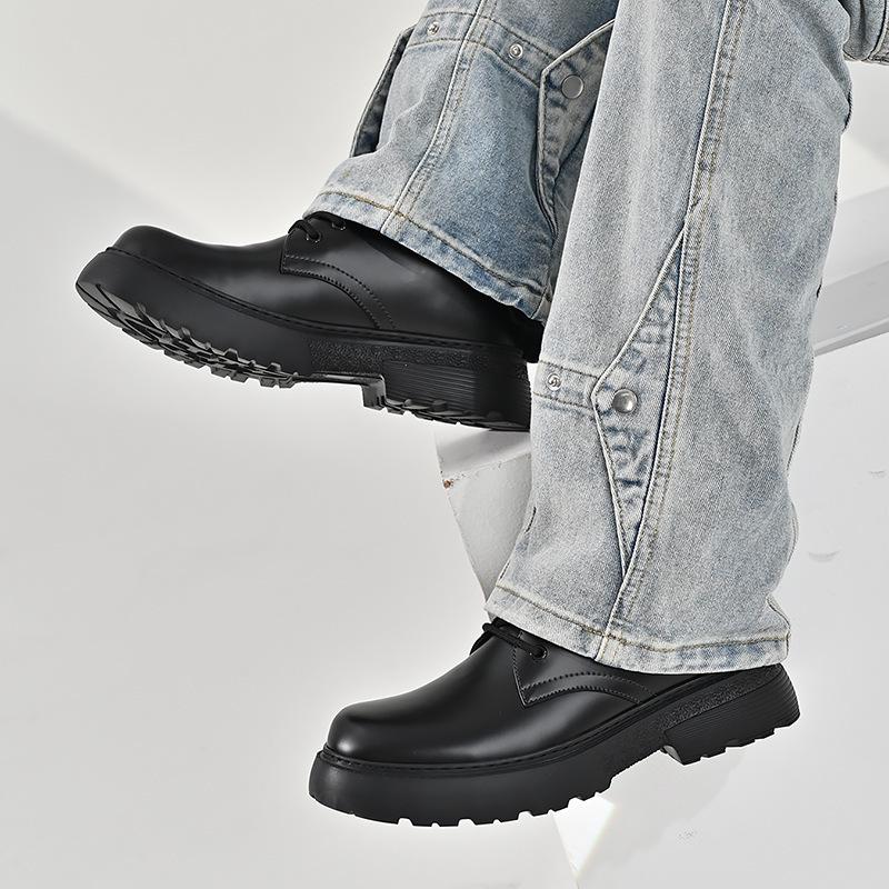 Zapatos para hombre, recién llegados en 2024, botas Martin de cuero genuino negro, de caña baja, combinables, estilo británico, zapatos casuales de cabeza grande, zapatos de moda.